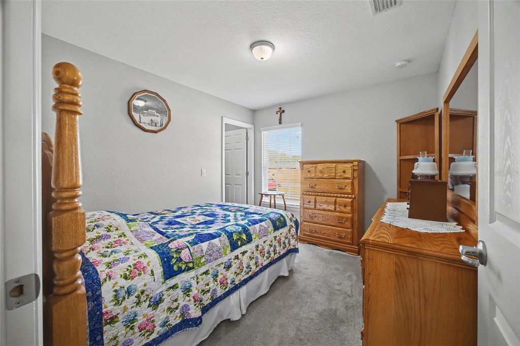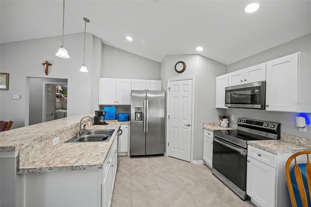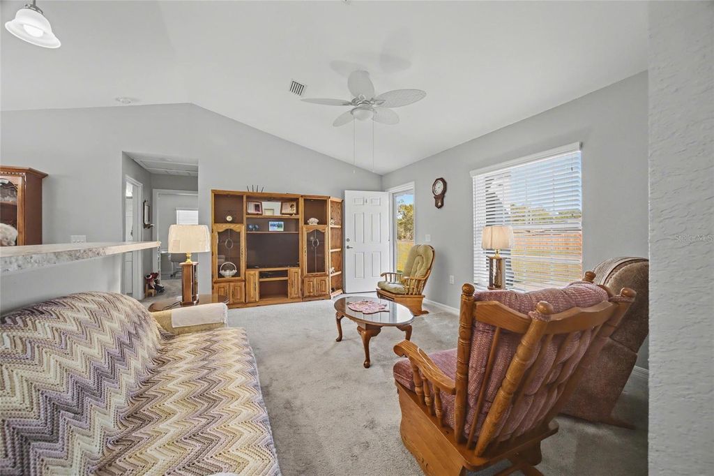 Beautiful concrete block stucco home with stone accents and NO HOA! This well-maintained home welcomes you with an inviting entry that opens to a bright, open-concept floor plan featuring vaulted ceilings and a spacious kitchen complete with stainless steel appliances and a high-top bar with seating for four "” perfect for entertaining. The primary suite offers a walk-in closet and a private bath with tiled walk-in shower and double vanity, while the split-bedroom layout provides two additional bedrooms both with walk-in closets and a second bath with tub/shower combination. Step out from the dining area to the 10x18 covered and screened lanai with epoxy flooring, ideal for relaxing year-round. A 12x20 storage shed offers excellent extra storage or workspace. Additional features include rain gutters, tile flooring in kitchen, laundry, and baths, carpet in main living areas and bedrooms, two-car garage, well and septic. Conveniently located near shopping and Hwy 200, "” this move-in ready home is must-see. Schedule your private tour today!