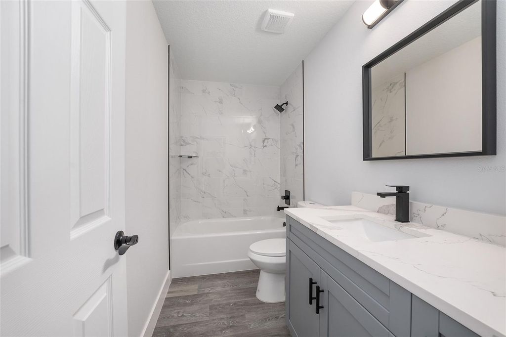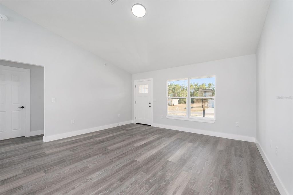 Under Construction. Discover contemporary comfort in this brand-new 3-bedroom, 2-bathroom home offering 1,576 sq ft of thoughtfully designed living space. Perfect for those seeking privacy and tranquility. The exterior features a charming front porch with a finished ceiling, adding subtle character to the home's clean lines and modern curb appeal. Step inside to an open-concept layout featuring luxury waterproof vinyl flooring throughout and sleek black finishes that enhance the bold, modern aesthetic. Stylish black LED pendant lighting highlights the kitchen, centered around an impressive 9-foot island "” ideal for gathering and entertaining. The space is completed with quartz countertops, solid wood soft-close cabinetry, and stainless-steel appliances, including a dishwasher "” a perfect blend of beauty and functionality. The spacious primary suite serves as a private retreat with an 18x15 layout, direct access to the rear patio, and a spa-inspired bathroom featuring dual vanities, a rainfall shower, and recessed lighting. Secondary bedrooms are generously sized at 13x11, offering comfort and flexibility for family, guests, or a home office. Your investment is protected by a limited Builder Warranty valid for one year from the issuance of the Certificate of Occupancy. Colors, finishes, and appliances may vary from home to home. Estimated completion dates are projections and subject to change.