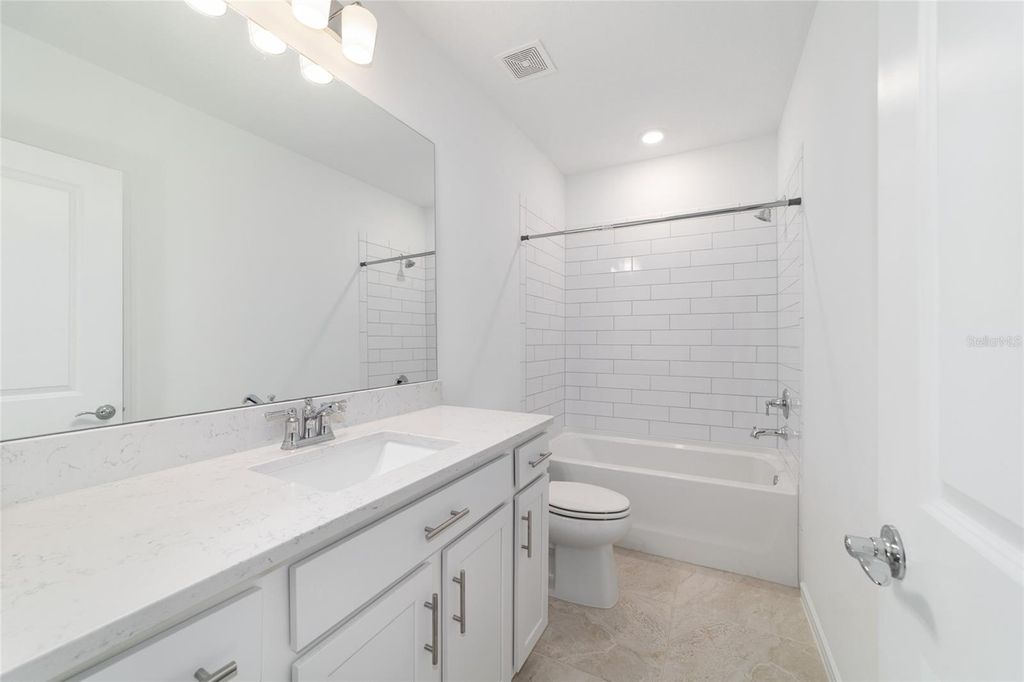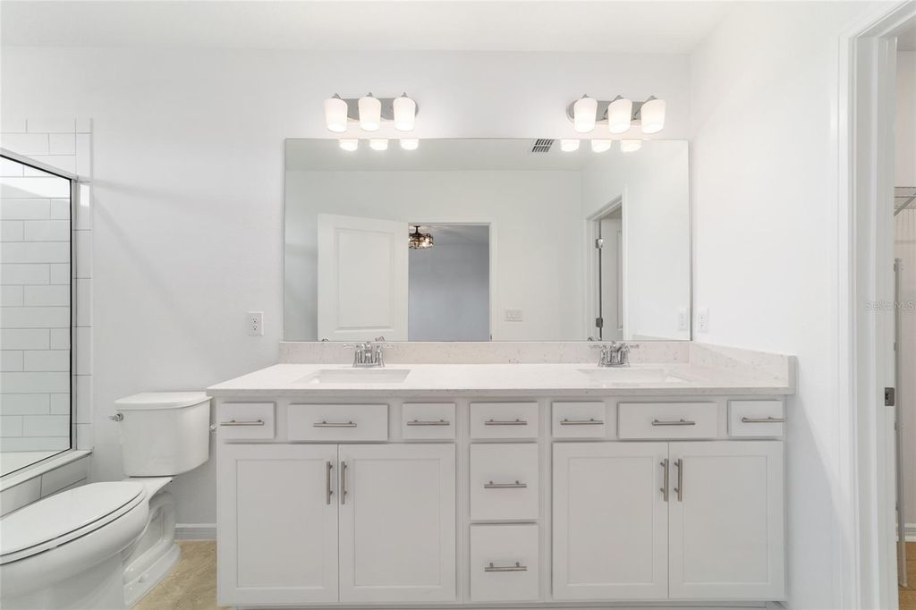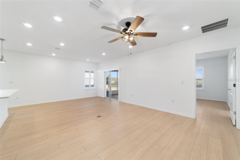 Welcome home to comfort, connection, and carefree living with peaceful views and no neighbors directly behind you! This exceptional Daylen model is tucked inside the gated 55+ Stone Creek Golf Course Community, where resort-style amenities and a vibrant, social lifestyle are part of everyday living. This thoughtfully designed home offers a seamless open-concept layout that enhances everyday living and entertaining. Natural light fills the space, complemented by Plantation shutters, recessed LED lighting, upgraded ceiling fans, and luxury vinyl plank flooring throughout. The designer kitchen showcases a large center island with stylish pendant lighting, a single-bowl sink with an upgraded faucet, Shaker-style cabinetry, sleek quartz countertops, herringbone tiled backsplash, a pantry for storage needs, and Whirlpool stainless steel appliances. Sliders in the gathering room allow easy access to the no-see-um privacy screened lanai overlooking quiet greenspace views, ideal for morning coffee, evening breezes, or hosting friends outdoors. With 4 bedrooms and 2 baths, this home offers ample space perfect for a hobby room, den, or home office space, and the layout offers privacy and flexibility. The sunlit Owner's suite features a large walk-in closet and a spa-inspired bath with dual sinks, quartz-topped counters, a comfort height commode, and a step-in tiled shower with a seating ledge. Additional perks include a whole-home water softener system, a Smart Home technology package with a video doorbell, and a 4-foot extended two-car garage with epoxy-coated flooring and room for your golf cart. Monthly HOA fees even include Spectrum cable and internet, giving you one less thing to worry about. Embrace the exceptional lifestyle of this vibrant community, featuring a 24/7 staffed gated entrance for security and peace of mind. Luxury-inspired amenities include heated pools, a state-of-the-art fitness center, a spa, and relaxing hot tubs and saunas. Stay active with pickleball, bocce, tennis, and softball field, while a dedicated lifestyle staff curates entertainment, activities, and special events to foster connections. Just beyond the gates, enjoy a golf course, pro shop, and restaurant"”perfect for socializing and unwinding. Make your move today and experience resort-style living at its finest!