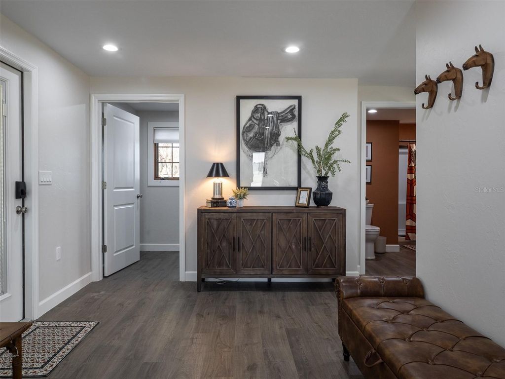 Situated in Morriston, just 15 minutes from the World Equestrian Center and 5 minutes from HITS, this 14+ acre fully fenced property supports equestrian and farm life and is dotted with majestic granddaddy oak trees, adding timeless beauty to the landscape. The unique, beautifully renovated two-story home features 2 bedrooms, 2 bathrooms, an office area, and a kitchen with stainless steel appliances. A covered carport with hay storage adjoins the home, and just steps away is a 2-stall horse barn, providing convenient access for daily horse care. The property also includes an in-ground pool, perfect for relaxing while enjoying the surrounding acreage. Additional structures include a detached garage/workshop and a metal pole barn, offering ample space for equipment, storage, or projects. Experience a peaceful rural lifestyle in this beautifully renovated home in the heart of Florida's horse country.