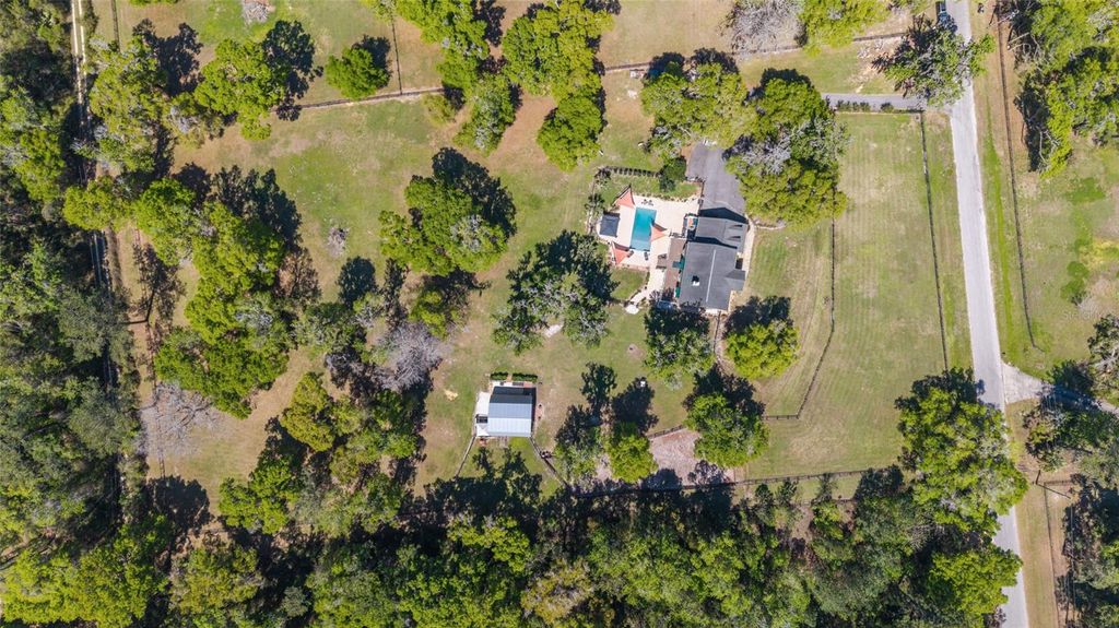Welcome home to this beautifully maintained 4-bedroom, 3-bath residence set on almost 5 acres in sought-after SW Ocala"”where comfort, space, and refined country living come together. Perfectly suited for families, this property offers a private and peaceful setting within one of Ocala's most desirable equestrian communities. From the moment you step inside, you're greeted with a warm and inviting atmosphere. The spacious two-story layout features an open-concept kitchen and family room anchored by a stunning stone fireplace, creating the perfect setting for both everyday living and entertaining. The main level also offers a formal living room, dining room, and a dedicated home office, providing flexibility and function for today's lifestyle. Upstairs, you'll find four generously sized bedrooms, along with two tastefully updated bathrooms. A large bonus/game room with its own private staircase adds versatility, making it ideal as a media room, playroom, or guest retreat. Designed for seamless indoor-outdoor living, sliding glass doors from the kitchen lead to a spacious deck overlooking a beautifully designed pool and outdoor entertainment area. The inviting pool, charming gazebo, and shaded, tree-lined backyard create a serene and elevated space for relaxing or hosting family and friends. Equestrian enthusiasts will appreciate the well-appointed barn featuring up to 6 stalls, a loft for storage, and a convenient wash rack, along with easy access to two shaded paddocks. Two lush green pastures"”one in the front and one in the rear"”provide ample space for horses, pets, or livestock. The community also offers scenic riding trails, allowing you to fully enjoy the equestrian lifestyle right from your doorstep. With almost 5 acres of usable land, this property offers endless possibilities, whether for outdoor recreation, future expansion, or simply enjoying the privacy and natural beauty that surrounds you. Additional highlights include generous storage throughout and abundant natural light that enhances the home's welcoming feel. Located among picturesque horse farms and close to top-rated schools, this home offers the perfect balance of tranquility and convenience, just minutes from shopping, dining, and everyday amenities. A rare opportunity to own a spacious family home with a touch of luxury in the heart of Ocala's horse country"”schedule your private showing today.