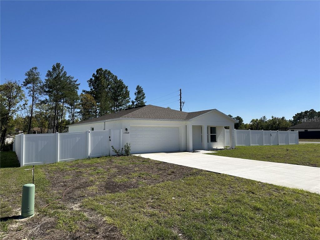 Welcome to this beautifully built 2024 home offering 4 bedrooms and 2 bathrooms, designed with a light, bright, and modern feel throughout. Situated on a desirable corner lot, this home features an open and functional layout that creates an inviting space for everyday living and entertaining. Clean finishes and contemporary design give the home a fresh, move-in-ready feel. The spacious yard provides plenty of room to create your ideal outdoor retreat, whether that's a future pool, garden, or entertaining space. Conveniently located just 15 minutes from State Road 200, you'll enjoy easy access to a variety of shopping, dining, and everyday essentials. With its newer construction, stylish touches, and comfortable flow, this home is perfect for buyers seeking a move-in-ready property in a growing area of Ocala. Don?t miss the opportunity to own a like-new home with space, style, and modern appeal.