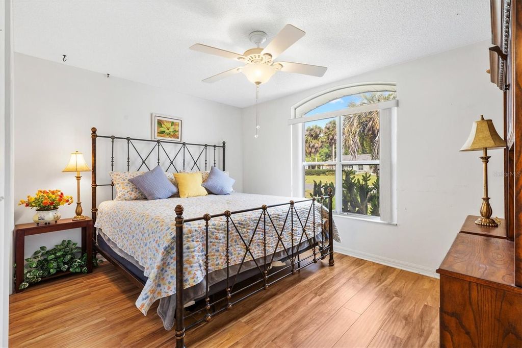 Step into comfort, charm, and a lifestyle you'll love in this beautifully maintained 2/2 home perfectly positioned to capture serene golf course and water view. Close to Chula Vista Rec Ctr. Inviting curb appeal stands out with classic brick accents, clean lines, and spacious driveway. 2022 EZ-GO Golf cart can convey at full price, which will make it effortless to enjoy everything the neighborhood - morning rides, evening sunsets, and easy access to nearby amenities. Inside you'll find a bright and welcoming layout designed for both relaxation and entertaining. Expansive lanai, lined with windows and filled with natural light creates the perfect space for morning coffee, casual dining or simply unwinding. A/C 2023, Soft Water System, Kitchen remodel 2023/quartz countertops, Bathrooms remodeled 2023/granite countertops, All electric TURNKEY Move in ready condition, engineered hardwood and tile floors throughout. Perfect seasonal retreat or full time living.