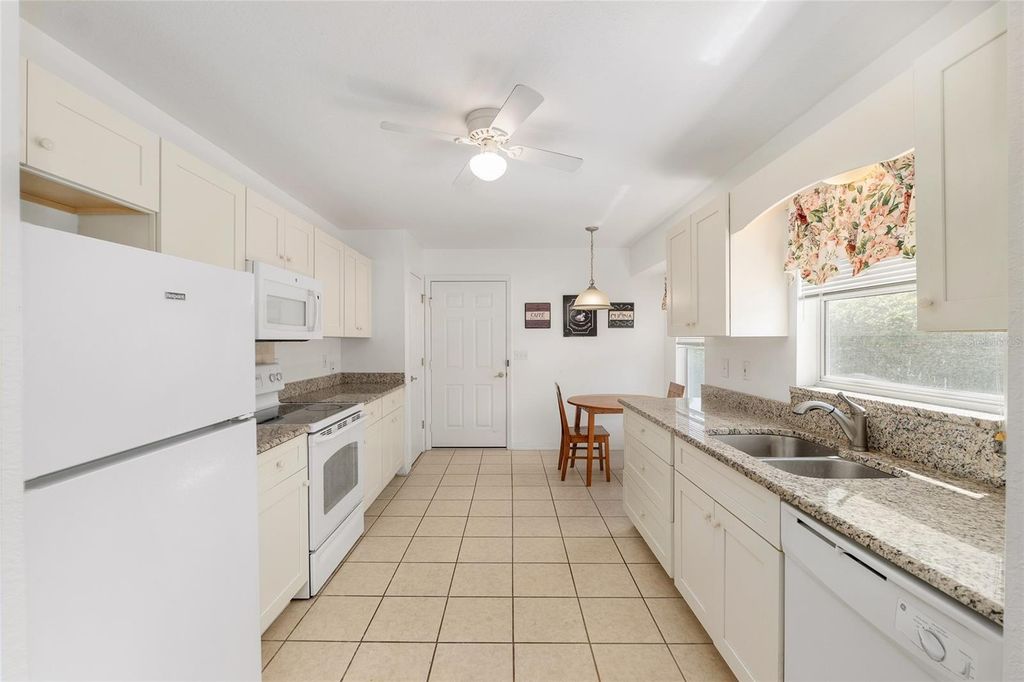 A seldom found LOW MAINTENANCE VILLA combines comfort, style and truly effortless living. With exterior upkeep, landscaping, weeding & irrigation system included in the monthly HOA fee, it's designed for those who value their time and want to enjoy a worry-free lifestyle. A great choice for a seasonal home away from home or a full time residence, this property is a stand-out choice. The interior features an open, inviting layout with a well-appointed eat-in kitchen including granite countertops & new cabinets and newer appiances. Great room/dining area is bright and opens to good sized enclosed climate controlled lanai... a perfect extra flex space for relaxation, office/den or workout area. Back yard is private. Home features 2 nice sized bedrooms, 2 bathrooms and an inside laundry room with washer/dryer. The roomy primary bedroom suite features walk-in closet and ensuite bath with a walk-in shower. Waterproof Luxury vinyl plank flooring throughout, and tile in kitchen & foyer..... No carpet in this home. HVAC 2023; Roof 2014 AWARD-WINNING Del Webb Spruce Creek Golf & Country Club is a GATED, 3,250 home, +55 Community with over 70 clubs, 3 pools, 3 spas, a Clubhouse, a Fitness Center, Bocce Ball, Shuffleboard, 12 Pickle ball Courts, 7 Tennis Courts, Sand Volleyball, Water Volleyball, Lake Vista Gazebo, Pavilions, Walking Paths and so much more! Come see this beautiful community with a GORGEOUS Tree Canopy on the Boulevard and the fabuous Liberty Grille Restaurant which offers a grreat menu and musical entertainment. Come, enjoy the four (4) 9-hole Golf Courses today and begin living your BEST LIFE!