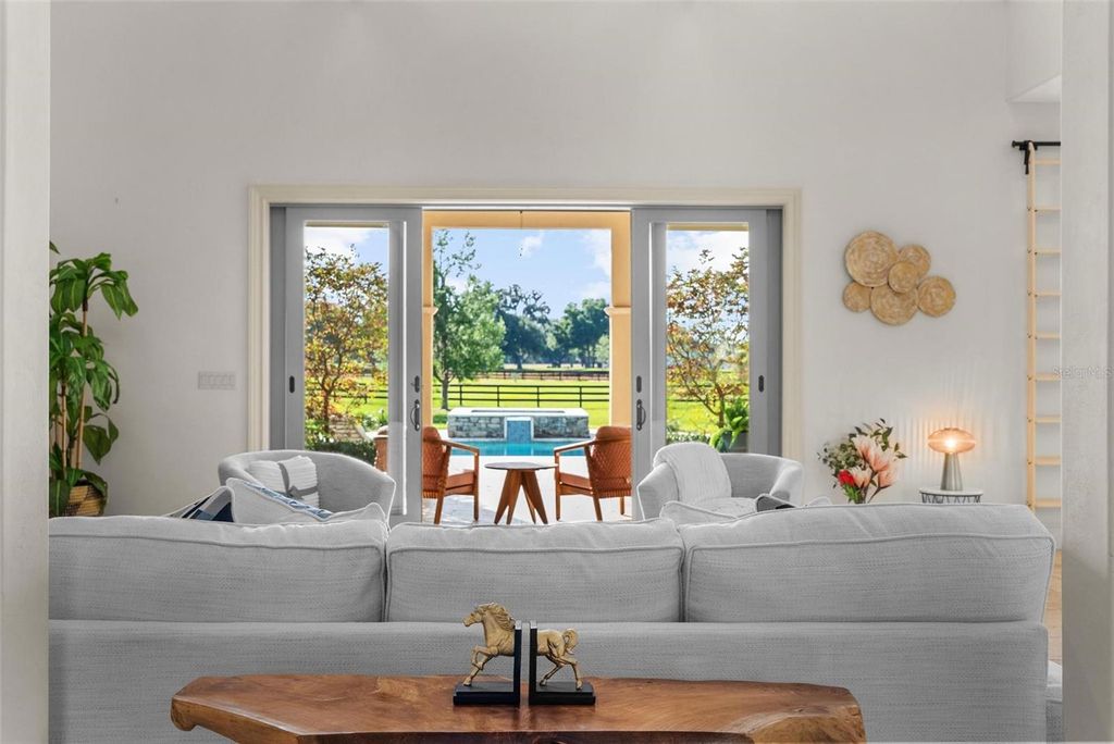 Discover your dream equestrian retreat with this stunning 5.34-acre Tuscan-style estate, located within a beautifully maintained and secure gated community featuring miles of scenic riding trails. Surrounded by an expansive 8,000-acre State Forest, this property offers unmatched privacy and natural beauty"”yet remains just 20 minutes from the World Equestrian Center and only 5 minutes from shopping, dining, and medical facilities. Ideally positioned between the Rainbow River and Ocala, it delivers both convenience and tranquility. The luxurious residence boasts over 3,800 square feet under air, offering 4 bedrooms, 4 bathrooms, plus a versatile fifth room on the second floor. Designed with both elegance and functionality in mind, the home features a dramatic living area with cathedral ceilings, a gas fireplace, and an open custom kitchen complete with high-end finishes, a wine cabinet, and a spacious pantry. A formal dining room, abundant closet space, tray ceilings throughout, travertine flooring inside and out, plaster walls, and precast trim details elevate the home's refined character. The expansive primary suite provides a private retreat, while the split floor plan ensures comfort and privacy for all. A breezeway leads to a generous two-car garage with an additional air-conditioned upstairs room"”ideal for guests, an office, or hobby space. This award-winning model, recognized by the Builders Association in 2016, blends timeless architecture with modern living. Outdoor living is equally impressive, featuring a heated 41' x 14' pool and spa added in 2020, perfectly positioned to capture breathtaking sunset views. Equestrian amenities include a beautifully constructed 3-stall concrete barn (14x14 stalls) with a tack room, full bathroom, and attached garage (built in 2022), along with two paddocks equipped with automatic waterers, a 200 x 100 arena, and durable creosote board fencing. Ride directly from your backyard onto miles of private trails. Thoughtfully landscaped with mature and newly planted trees for added shade and privacy, this turnkey property is offered newly furnished, making it truly move-in ready. A rare opportunity to own a luxury equestrian estate where lifestyle, location, and design come together seamlessly.