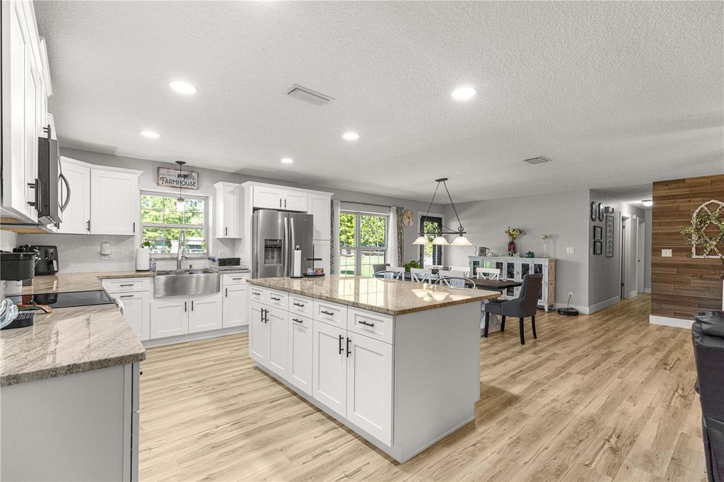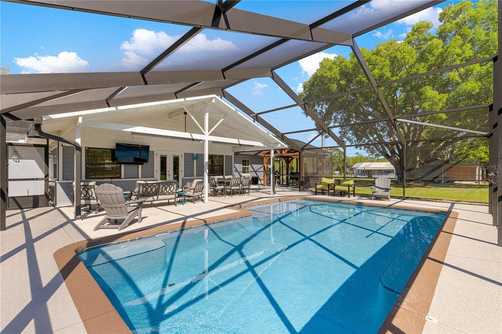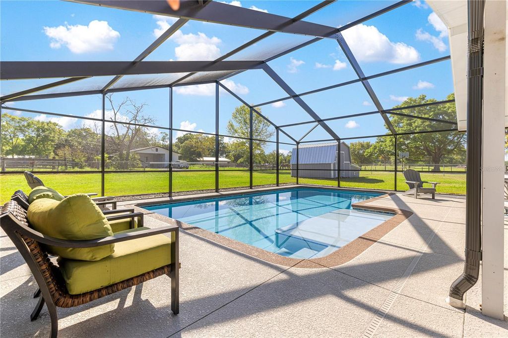 Welcome to the home you don't want to miss! Zoned A-1, this property offers the perfect blend of country living and modern comfort "” bring your mini-farm dreams to life while enjoying a beautifully updated home. Additional 3+ acres are available right behind the property for even more space to expand or add another home and have your own family compound. As you enter through the electric gate, you'll be greeted by lush green space and open pasture. The 3-bedroom, 2-bath, 2-car garage block home features a brick façade for timeless curb appeal. Inside, an open-concept layout provides generous space for entertaining. The stylishly updated kitchen boasts white shaker cabinets, granite countertops, stainless steel appliances, subway tile backsplash, and a large island with bar seating. The adjoining dining area easily accommodates a large table for family and friends. The living room features a warm accent wall with wood detailing, and the massive den/flex room adds even more space to gather and enjoy. Step through the French doors to your nearly new saltwater pool with a screened enclosure "” complete with a beach area, water jets, and a covered gazebo area for grilling. The primary suite offers comfort and style with carpet flooring, a ceiling fan, a walk-in closet, and an updated ensuite bath featuring a double-sink vanity and a glass-enclosed tiled shower. Two additional bedrooms provide ideal accommodations for guests, along with a second full bath with a tub/shower combo. The two-car garage includes the laundry area and water softener complete with a screened front. Outside, you'll find an RV-ready carport with power and water, a full-sized basketball court, and a fenced pasture ready for animals or expansion. The backyard has a chain-link fence for your pets and a shed houses the well and includes some storage. With plenty of open space and thoughtful upgrades, this property offers endless possibilities for the lifestyle you've been dreaming of. Roof and HVAC 2022. Schedule your private showing today "” this one won't last!