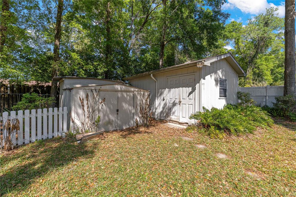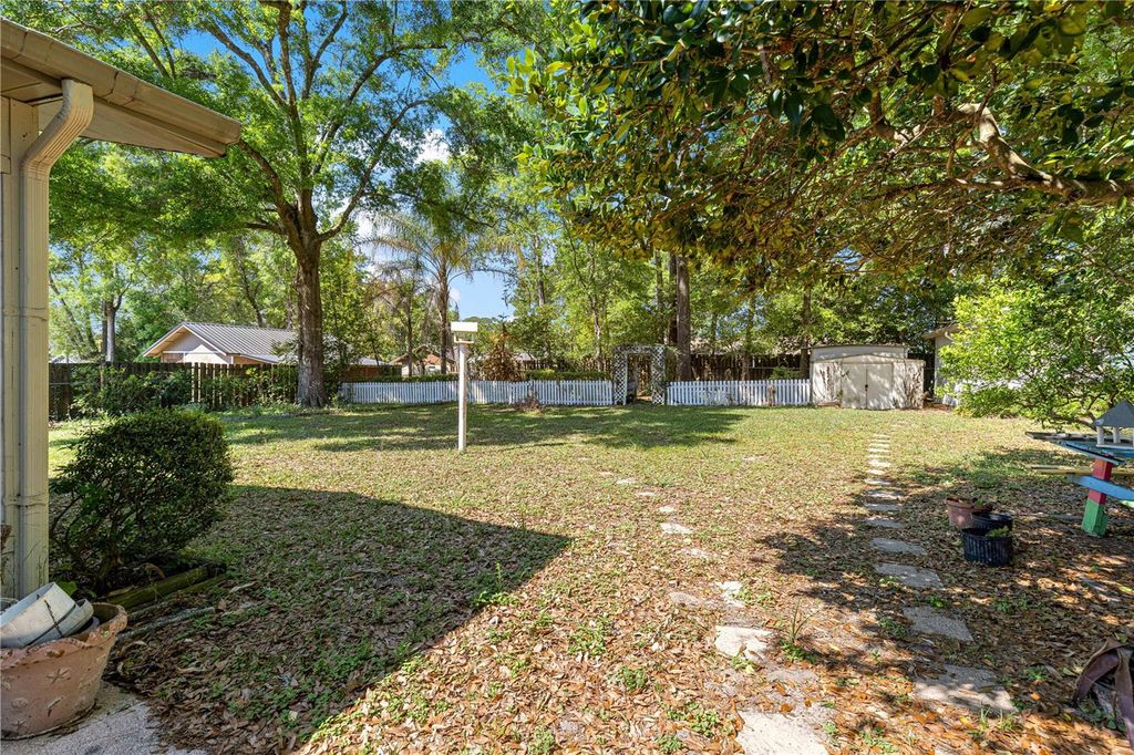 3-bedroom, 2-bath home in the established Carol Estates neighborhood of NE Ocala. Features a spacious family room with a wood-burning fireplace and a functional layout The kitchen offers ample cabinet and counter space. The screened in porch overlooks a spacious and well landscaped yard. The backyard is fully fenced with mature trees, a deck area, and storage sheds. Additional features include a single-car garage and convenient access to shopping and dining.