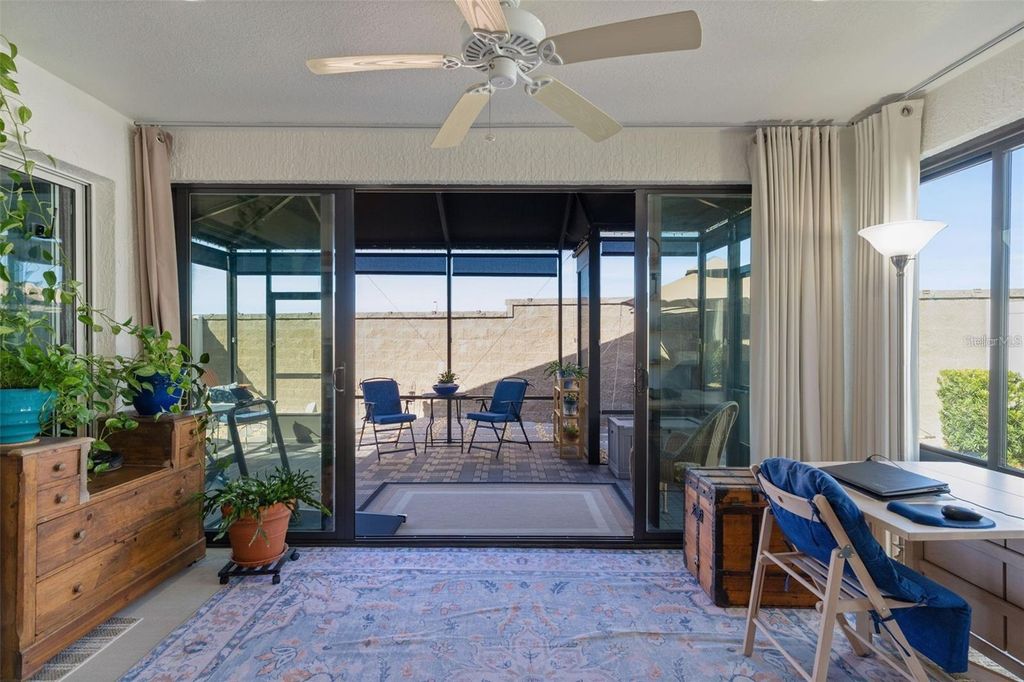 Charming 2-Bedroom, 2-Bathroom Unfurnished Villa in the Village of Woodbury, Phillips Villages. Welcome to your new home! This stunning courtyard villa features an inviting open floor plan with high vaulted ceilings and durable vinyl plank flooring throughout. The spacious kitchen is a chef's dream, boasting Quartz countertops and modern stainless steel appliances, and MOST important the rent includes the electric, water, sewer, sanitation, pest control, lawn care, the Villages amenities. The tenant only pays for the internet/cable. The master bedroom offers a serene retreat with a tray ceiling, ceiling fan, and a generous walk-in closet. The en-suite bathroom includes a walk-in shower with a glass door for added convenience. Enjoy year-round comfort in the glass-enclosed lanai, equipped with heating and air conditioning, perfect for relaxation any season. Additionally, there's an outdoor patio area with manual shades. This villa is ideally situated 0.5 miles from The Villages VA Clinic, 2.1 miles from FIRST RESPONDERS RECREATION CENTER, 1.7 miles from Nancy Lopez Golf & Country Club, 4.1 miles from Glenview Country Club, 3.8 miles from Savannah Sports Pool & Regional Recreation, just to mention a few. Rental Policies: - Rent includes Electric,water, sewer, sanitation, lawn care, pest control, and access to amenities. - Tenant responsible cable/internet, and any additional services. - Two complimentary temporary Village ID cards provided for recreation center, pool, activities, and golf access. - Guest passes available through The Villages. - Refundable security deposit required (subject to inspection and return of keys, remotes, and gate passes). - Cleaning fee may apply if the home is not left in satisfactory condition. - Renter's insurance is recommended. - Credit and background checks are required. - Absolutely NO SMOKING. Don't miss this incredible long-term rental opportunity!