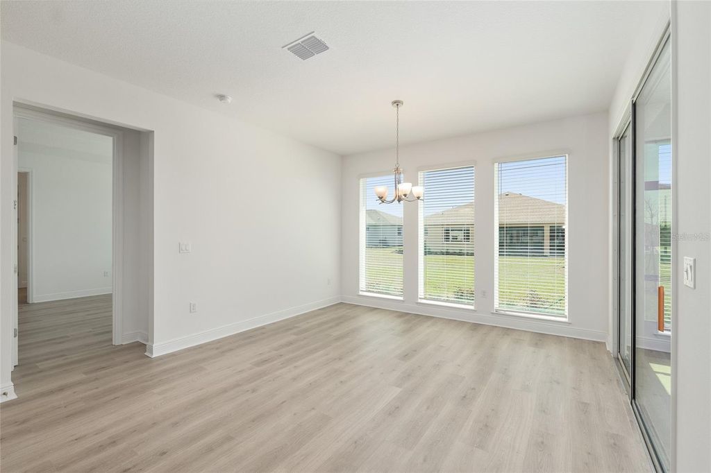 Welcome to refined, low-maintenance living in Candler Hills at On Top of the World. Perfectly positioned on a desirable corner lot, this beautifully designed Brighton model offers comfort, style, and thoughtful upgrades throughout. This inviting home features 2 bedrooms, 2 baths, and a golf cart garage, along with a versatile layout ideal for both everyday living and entertaining. Enter through the charming covered front porch into a welcoming foyer that opens to a spacious living room filled with natural light. The well-appointed kitchen is a standout, featuring classic subway tile backsplash, built-in ovens, ample cabinetry, and a functional layout that flows seamlessly into the breakfast area"”perfect for casual dining. A flex room with elegant French doors provides the perfect space for a home office, den, or guest area. The private owner's suite offers a peaceful retreat with a generous walk-in closet and en-suite bath, while the secondary bedroom and bath are thoughtfully positioned for guest privacy. Enjoy indoor-outdoor living with a covered lanai, ideal for relaxing and enjoying Florida's year-round sunshine. A dedicated laundry suite and golf cart garage add everyday convenience and functionality. Located within a premier active adult community, residents enjoy access to golf, resort-style pools, fitness centers, dining, and a vibrant social lifestyle.