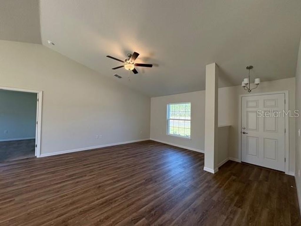 NEW HOME located in Marion Oaks. This new home is within the HOA community of Glen Aire. It has 3 bedrooms, 2 full baths, and a 2-car garage. 2094 total sq ft. and built on .18 acres. The open floor plan gives lots of space for the great room and dining room. The Kitchen has a large Island, lots of cabinets with soft close, a pantry, and SS GE appliances. Delta faucets and stainless-steel sink. Granite on ALL surfaces in kitchen and bathroom countertops. Luxury vinyl plank flooring in all main living areas and wet areas with carpet only in the bedrooms. Sliding glass doors lead out to concrete patio in the back yard. The owner's bedroom and bath feature a ceiling fan, dual sinks, tub/shower combo, and a private toilet closet. The Laundry room is inside! The garage comes equipped with a garage door opener, pull downstairs to access the crawl space, and irrigation control box. The yard space is fully sodded, landscaped with irrigation system. In-wall Taexx system to protect your home from bugs. Home also has a 10-yr structural warranty. HOA fee is $79/month and includes community pool, tennis court and residential trash pickup twice a week.