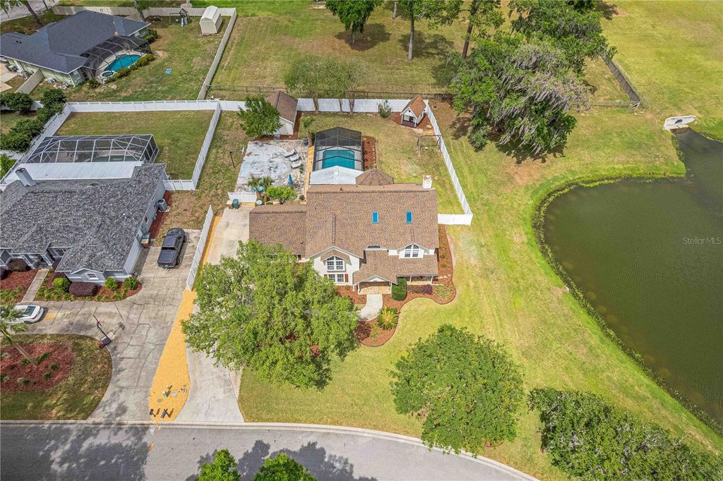 **Spacious and beautifully updated 4-bedroom, 3 bath pool home offering over 3,152 sq ft under air, ideally situated on Natures Pond and also on a quiet cul-de-sac just minutes from downtown Ocala. This home features a desirable layout with one bedroom (with ajoining bath) on the main floor--perfect for a home office or guest suite. The updated kitchen showcases leather granite countertops, pull out pantry closet, pull down spice rack, and lower cabinet pull outs. The kitchen nook looks out over the pool and back yard through a half circle of windows. Enjoy multiple living and entertaining spaces including a formal dining room with plantation shutters, a family room with fireplace, and a unique pool table/game room complete with lake views, wetbar and wine refrigerator. Crown molding adds an elegant touch. The primary suite us a true retreat, featuring its own fireplace, private balcony, and a fully updated luxury bathroom. The two remaining bedrooms upstairs have a jack and jill bath set up and custom walkin closets. Step outside to your private oasis with a pool and expansive covered lanai ideal for relaxing or entertaining year-round. Additional highlights include an attached 2-car garage , a detached 2-car garage, basketball court (easily converted to outdoor entertaining space) and a charming playhouse with loft. This property offers space, character, and a prime location... DON'T MISS THIS ONE!!! Priced below appraised value!