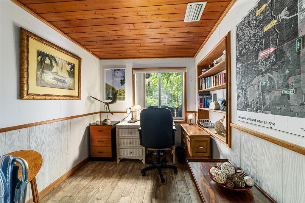 Experience classic Florida magic tucked along the legendary Rainbow River "” and yes, you just might want to stay forever. Built in 1953, this warm and soulful riverfront home offers 2 bedrooms and 1.5 bathrooms in the main house, plus an additional bedroom and bathroom in the detached guesthouse. Cedar walls throughout give the home its signature cabin-cool, river-relaxed character "” the kind of place that slows your heartbeat the moment you walk in. Tile floors keep things easy and comfortable, while the cozy kitchen features granite countertops and recently updated appliances. Each bedroom tells its own story: one looks out over the garden, the other opens to the river. Wake up to morning fog rolling softly over the water, herons gliding through the mist, and turtles perching on sun-warmed driftwood as the day gently stirs to life. The massive waterfront deck is just steps from your bedroom door "” grab a book, a journal, or a cup of coffee and settle into one of the Adirondack chairs. Breakfast tastes better here. Rainy Summer Day, no worries, the enclosed oversized lanai overlooks the river - curl up, chill out, and just take in the scenery. Rain or shine, time moves more slowly here. That's the point. But we are in Florida, where endless summer days warm up, and the real fun begins. A waterfront slide, rafting, boating, kayaking, and the pure wonder of the Rainbow River await. After a full day of adventure, rinse off at the outdoor shower or use the convenient exterior entrance directly to the bathroom and bedrooms. This home is also actively generating rental income and is available turn-key "” details provided upon request. The detached guesthouse is a wonderful bonus, offering a comfortable living space with a Murphy bed, a private bedroom, a recently remodeled bathroom, and a lovely lanai overlooking the fire pit "” perfect for family, guests, or additional income potential. Round it all out with an oversized 2-car detached garage for all the gear, toys, and storage you need. Peace of mind comes included: roof replaced in 2020, HVAC and hot water heater both new in 2025, and a soft water system already in place. This home has been loved by every generation that has called it their own, and that sense of warmth and care is felt in every corner. Perfectly situated just minutes from Downtown Dunnellon, Blue Run Park, and Rainbow Springs State Park, with easy access to Crystal River, Inverness, Hernando, and Ocala for those days when you're ready for a change of scenery "” though once you're here, that urge may be hard to find. This is a rare opportunity to own a place where the river lifestyle is the amenity, and where leaving is the hardest part.