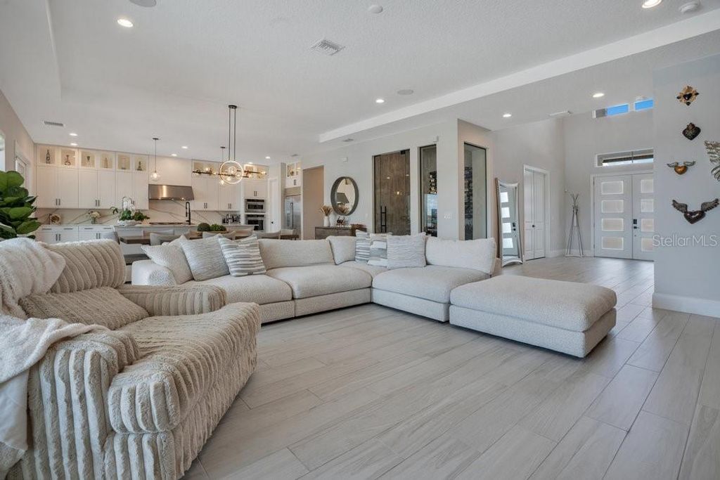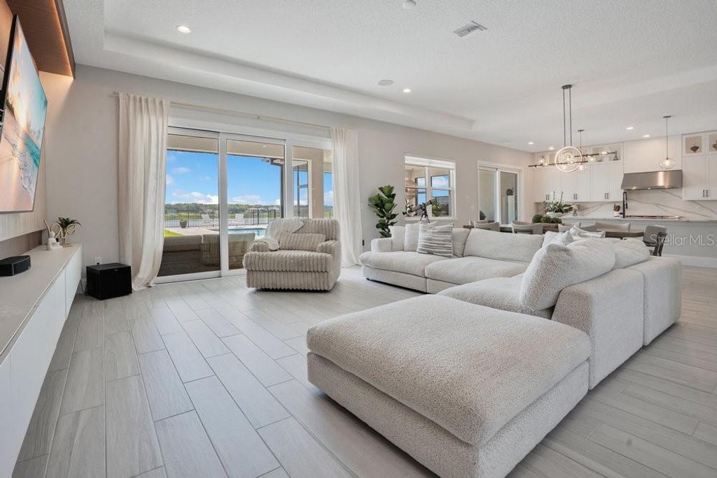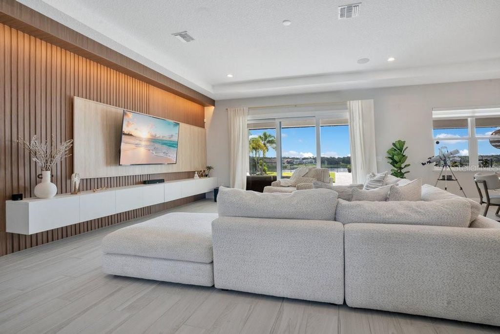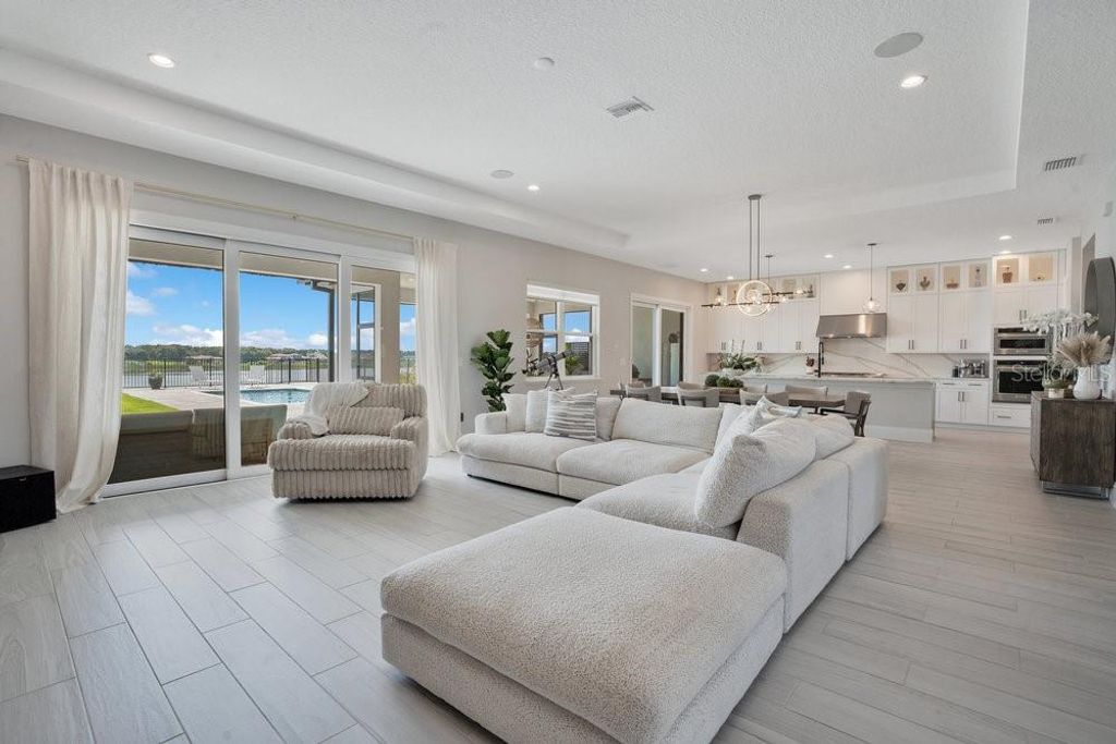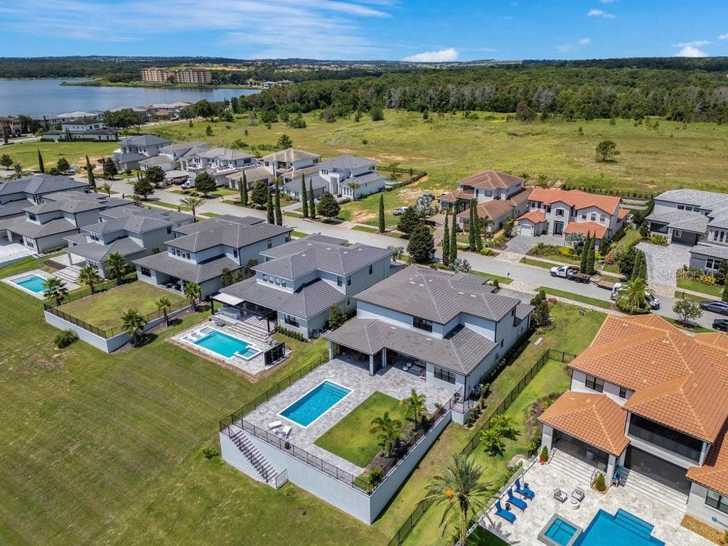 "Price Improvement" Don't want to wait for a new build or go through the hassle of endless decisions? Looking for a move-in ready, lakefront home with all the modern upgrades ? This is the perfect opportunity for you! This stunning 5-bedroom home on Lake Siena is ready and waiting. Enjoy breathtaking water views from nearly every room, with an open-concept floor plan that blends elegance, comfort, and functionality. A gourmet kitchen with an oversized island, top-of-the-line KitchenAid appliances, a 6-burner gas range with griddle, triple ovens, and ample cabinetry. A glass-enclosed wine room adds elegance, while the great room boasts an accent slatted wall with a hidden door that leads straight to the 1st-floor primary suite, giving you quick access and total privacy. The primary suite offers a spa-like experience with a freestanding soaking tub, a large walk-in shower with a rain head, double vanities, a separate makeup vanity, and double walk-in closets. An additional en-suite bedroom was added on the first floor, along with a private home office. Upstairs there are three additional bedrooms, a loft, and a massive BONUS ROOM ready to be transformed in a game room, home theater or the gym of your dreams .Two bedrooms share a Jack-and-Jill bathroom with separate vanities, while the third bedroom includes an en-suite bath. So many beautiful and modern design details are found throughout, including decorative tile in the 1st-floor powder room and laundry room. The laundry room is enhanced with custom pedestals for the washer and dryer, added cabinetry, and a laundry tub. This home also offers a 7-camera home security system, ample garage storage with ceiling-mounted safe racks, wall-mounted cabinets, and epoxy flooring. This home's backyard has been specially built with a beautiful and modern pool, and so much outdoor space perfect for entertaining family and friends while enjoying the BEST of Florida Nature ... the Sunrises, the sunsets are truly amazing and yes you can enjoy "”Disney fireworks too! This home has everything you've ever dreamed of... Bella Collina is one of Orlando's most charming golf communities, known for its impressive clubhouse offering panoramic lake views, a championship golf course, har- tru tennis courts, fitness center, resort style pool and luxury homes. Inspired by Tuscan style, it offers a unique and private environment, only 30 minutes from Disney.