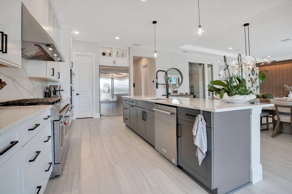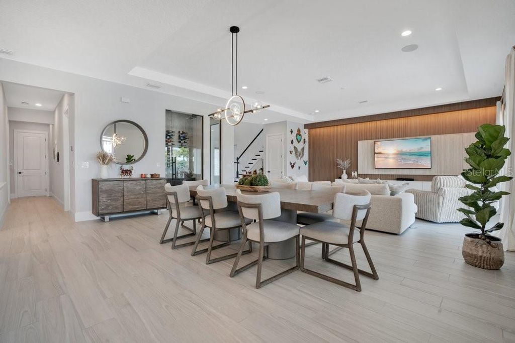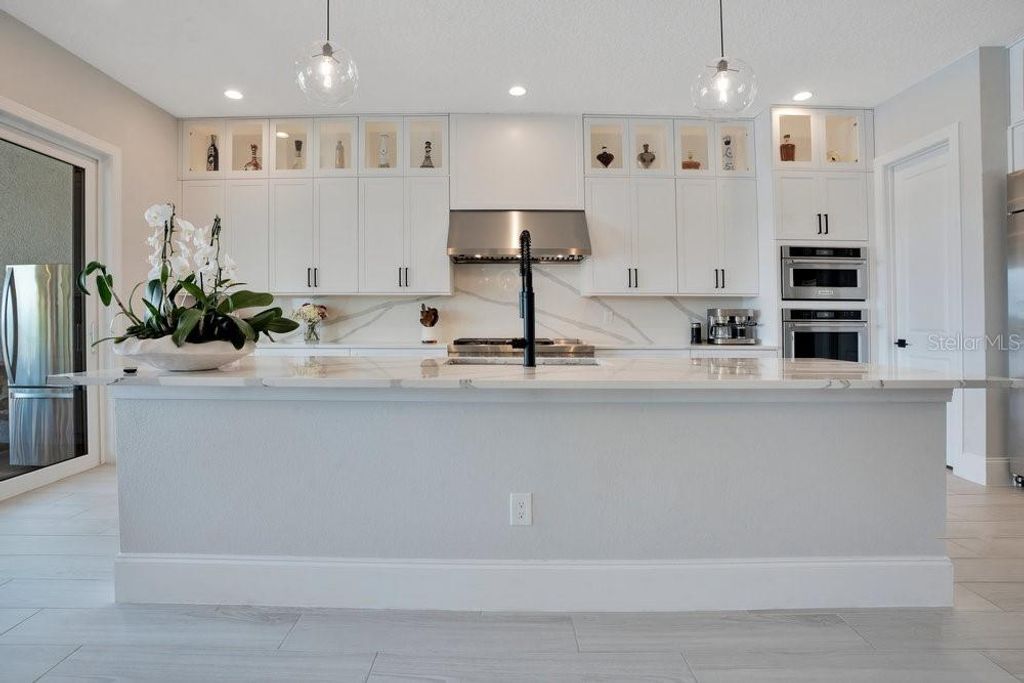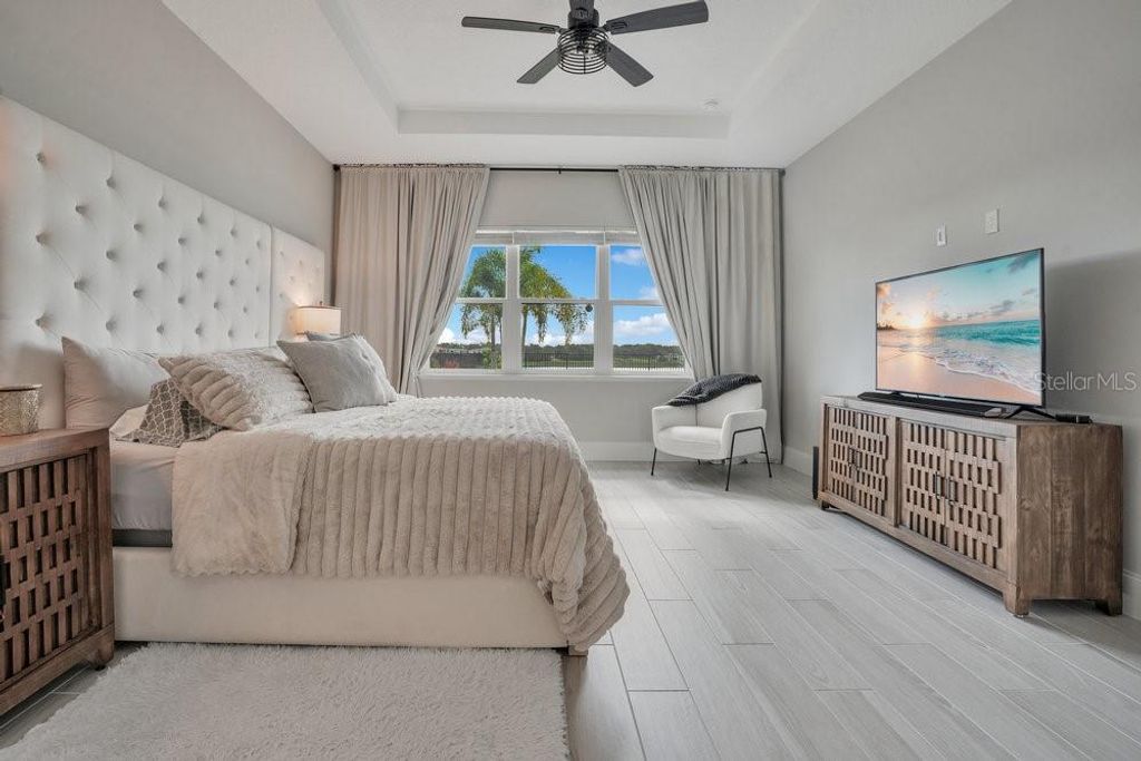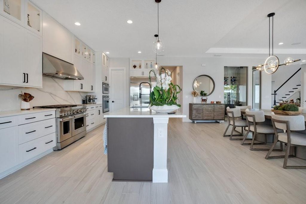 "Price Improvement" Don't want to wait for a new build or go through the hassle of endless decisions? Looking for a move-in ready, lakefront home with all the modern upgrades ? This is the perfect opportunity for you! This stunning 5-bedroom home on Lake Siena is ready and waiting. Enjoy breathtaking water views from nearly every room, with an open-concept floor plan that blends elegance, comfort, and functionality. A gourmet kitchen with an oversized island, top-of-the-line KitchenAid appliances, a 6-burner gas range with griddle, triple ovens, and ample cabinetry. A glass-enclosed wine room adds elegance, while the great room boasts an accent slatted wall with a hidden door that leads straight to the 1st-floor primary suite, giving you quick access and total privacy. The primary suite offers a spa-like experience with a freestanding soaking tub, a large walk-in shower with a rain head, double vanities, a separate makeup vanity, and double walk-in closets. An additional en-suite bedroom was added on the first floor, along with a private home office. Upstairs there are three additional bedrooms, a loft, and a massive BONUS ROOM ready to be transformed in a game room, home theater or the gym of your dreams .Two bedrooms share a Jack-and-Jill bathroom with separate vanities, while the third bedroom includes an en-suite bath. So many beautiful and modern design details are found throughout, including decorative tile in the 1st-floor powder room and laundry room. The laundry room is enhanced with custom pedestals for the washer and dryer, added cabinetry, and a laundry tub. This home also offers a 7-camera home security system, ample garage storage with ceiling-mounted safe racks, wall-mounted cabinets, and epoxy flooring. This home's backyard has been specially built with a beautiful and modern pool, and so much outdoor space perfect for entertaining family and friends while enjoying the BEST of Florida Nature ... the Sunrises, the sunsets are truly amazing and yes you can enjoy "”Disney fireworks too! This home has everything you've ever dreamed of... Bella Collina is one of Orlando's most charming golf communities, known for its impressive clubhouse offering panoramic lake views, a championship golf course, har- tru tennis courts, fitness center, resort style pool and luxury homes. Inspired by Tuscan style, it offers a unique and private environment, only 30 minutes from Disney.