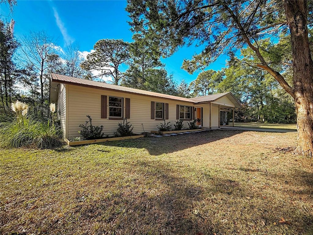 **SELLER MOTIVATED. SELLER WILL CONTRIBUTE $5,000.00 TOWARDS THE BUYER'S CLOSING COST.** NO HOA!!!THIS HOME HAS BEEN FULLY RENOVATED. Welcome home to OCALA!!! A City known as the Horse Capital of the World. This charming, move-in-ready house features three bedrooms, two bathrooms, an enclosed porch, and an oversized lot covering over half an acre! With corner lots on both ends, it sits in the most desirable "X" flood zone! There is a detached shed on the expansive grounds, and the Hurricane shutters are stored there. The primary suite includes a private in-suite bathroom. The home is fully equipped with appliances: a new refrigerator, stove, dishwasher, and microwave. The interior has been completely renovated, NEW AC, NEW WATER HEATER, NEW APPLIANCES, NEW BATHROOMS, NEW KITCHEN, 42" cabinets with crown molding and elegant quartz countertops, and a porcelain backsplash tile. NEW WOOD-LIKE WATERPROOF LAMINATED FLOORS throughout; the entire house has been re-plumbed, and a freshly painted interior. No HOA fees, and no public sewer, which helps save on additional expenses. The septic tank has been recently cleaned and pumped out. The metal roof was replaced on 04/11/2002 and has a life expectancy of 40 to 70 years, depending on weather conditions. The layout features a spacious living area that seamlessly connects to the social, dining, and kitchen spaces, creating an inviting atmosphere for both entertaining and relaxing. Enjoy Florida's beautiful weather on the enclosed porch, Ideal for morning coffee or evening gatherings. This well-maintained home is nestled in a friendly community, the perfect blend of comfort and convenience. Just minutes from local markets, shops and attractions, 12 minutes to the World Equestrian Center, 10 minutes to Silver Springs State Park, Rainbow Springs, 11 minutes from Ocala National Forrest, 7 minutes to the Musseums and Gallery, 12 minutes to the hospital, 4 to 6 minutes to Amazon, FedEx, and Auto Zone warehouse, 10 minutes to the Highways. in short zip code 34479 puts you in the heart of Ocalas esquestrian and natural Florida lanscape. Enjoy the outdoor activities, and make this lovely home yours.