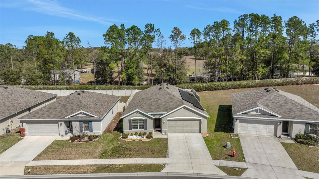 Welcome to 8640 SW 49th Circle in Ocala, a beautifully maintained 2021-built home located in the desirable Greystone Hills community. This 4-bedroom, 2-bathroom home offers 1,827 square feet of thoughtfully designed living space, combining modern construction with upgrades that make everyday living comfortable and efficient. Inside, you'll find durable scratch-resistant flooring throughout, spacious living areas, and a modern kitchen equipped with appliances and smart home features. The layout offers an open flow between the kitchen, dining, and living spaces, ideal for both everyday living and entertaining. The primary suite features a walk-in closet and a private bathroom, while the additional bedrooms offer flexibility for guests, home office space, or growing households. Step outside to enjoy a fully fenced backyard with paver patio and sealed outdoor space, perfect for relaxing or hosting gatherings. The home also includes solar panels and a whole-house water filtration system, providing energy efficiency and clean water throughout the property. Built in 2021, this home offers the benefits of modern construction, energy efficiency, and move-in ready condition. Conveniently located in southwest Ocala, the property provides easy access to shopping, dining, schools, and major roadways including SW 49th Avenue and State Road 200, making commuting throughout Marion County simple and convenient. If you're looking for a modern, well-maintained home with upgrades already in place, this property is ready for its next owner.