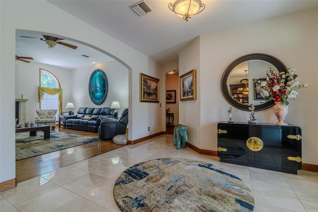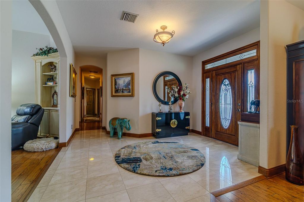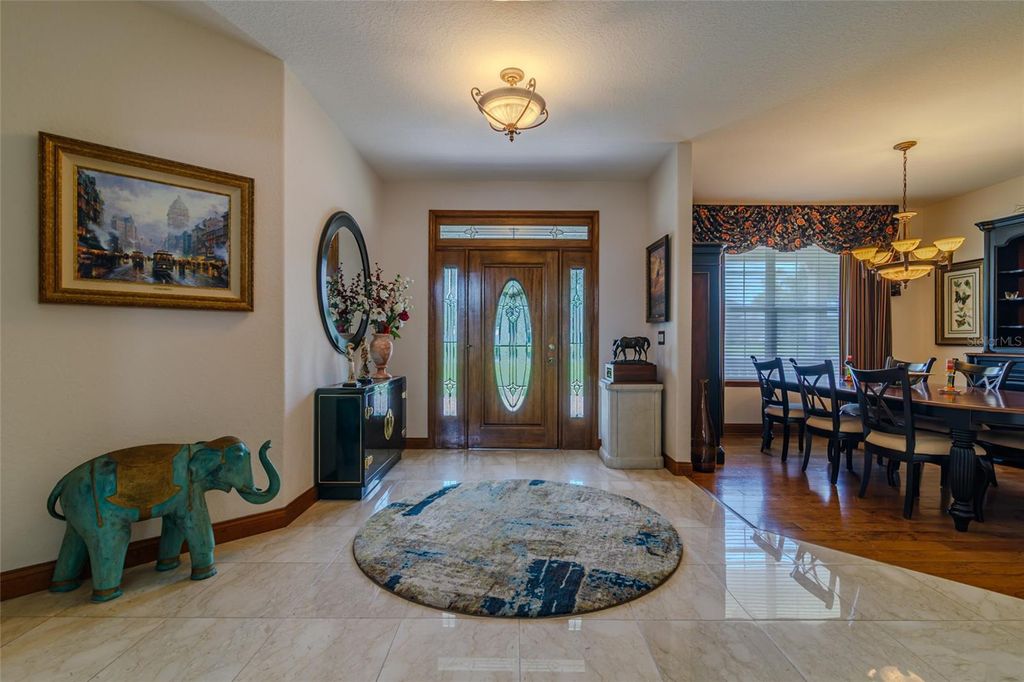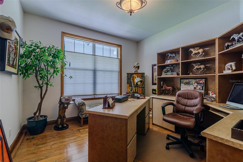 "BIG DROP, BIG OPPORTUNITY-$50,000 off for Today's Buyer!" ELEGENT CUSTOM BRICK HOME in GATED COMMUNITY! The Hunt Club at Fox Point! Discover exceptional living in this stunning custom-built brick home nestled within the exclusive gated community of The Hunt Club at Fox Point. Designed for both style and function, this spacious residence offers timeless craftsmanship and thoughtful details throughout. Step inside to find 5" solid oak wood flooring flowing through the inviting family room, complete with a marble gas fireplace and charming corner-built ins. The spacious formal dining room also features rich oak flooring, perfect for hosting gatherings. The gourmet kitchen is a chef's dream, boasting granite countertops, stainless steel appliances, island with gas cooktop, two large walk-in pantries, built-in desk, and a generous breakfast nook ideal for casual dining. The luxurious master suite offers his-and-her walk-in closets with custom built-ins and a marble master bath featuring double sinks, walk-in massage jet shower with seating. All additional bedrooms are generously sized, each with custom walk-in closets. A study provides the perfect space for a home office, a large upstairs bonus room with a private bath offers endless flexibility for guests, media, or hobbies. Enjoy outdoor living with a paved patio, partially screened for comfort, and a paved driveway and walkway enhancing curb appeal. The home also includes an epoxy-coated over-sized 3-car garage floor, an enclosed air-conditioned storage room, and automated in-wall pest control for added peace of mind. Additional highlights: all closets air conditioned, Solid wood custom-built cabinetry and Custom window treatments! Convenient laundry room with easy access from bedrooms. Ample storage throughout the home. Ideally located near shopping, restaurants, I-75, and the renowned World Equestrian Center. This exceptional home blends refined living with modern convenience. Schedule your private tour today and experience the unmatched quality of The Hunt Club at Fox Point!