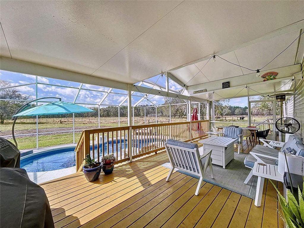 32 acres MOL situated on a quiet country road in Sumter County, Florida that backs up to State Property. Ideally located, and centrally located to Orlando, Tampa, and Ocala areas. Property perfect for gardening, grazing your livestock, training or simply enjoying the beauty of rural living. Fenced and cross fenced into twelve pastures that are approximately 2.5 acres each. Property has a working well that furnishes water to pasture and there are 6 livestock feeders and a cattle pen. There is also an additional 3 wells on the property that are not currently being used. For all your equipment storage there is a 30x40 metal barn with 3-12ft rollup overhead doors. Situated on this property is a triple-wide that boast 4 bedrooms, 3 full baths, plus a bonus room for den or office. All bedrooms are inviting, though the primary suite and ensuite bath is an exceptionally notable space with additional sitting area and private entrance to side deck for those quite moments. the kitchen is fully equipped with stainless steel appliances, breakfast bar, loads of cabinet space and pantry space. The main living area is a huge space that provides a dining area and a cozy corner wood burning fireplace. Enjoy Florida's beautiful weather and those family cookouts from your covered 14x30 rear deck and take a dip in your inground screened saltwater pool. If you are looking for that quiet rural farm living, welcome home. Seller will be conveying along with property a 30hp tractor with 6 implements, 30 ft. cattle trailer and a 30 ft flat-bed trailer.