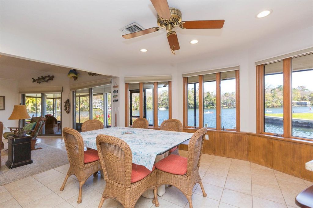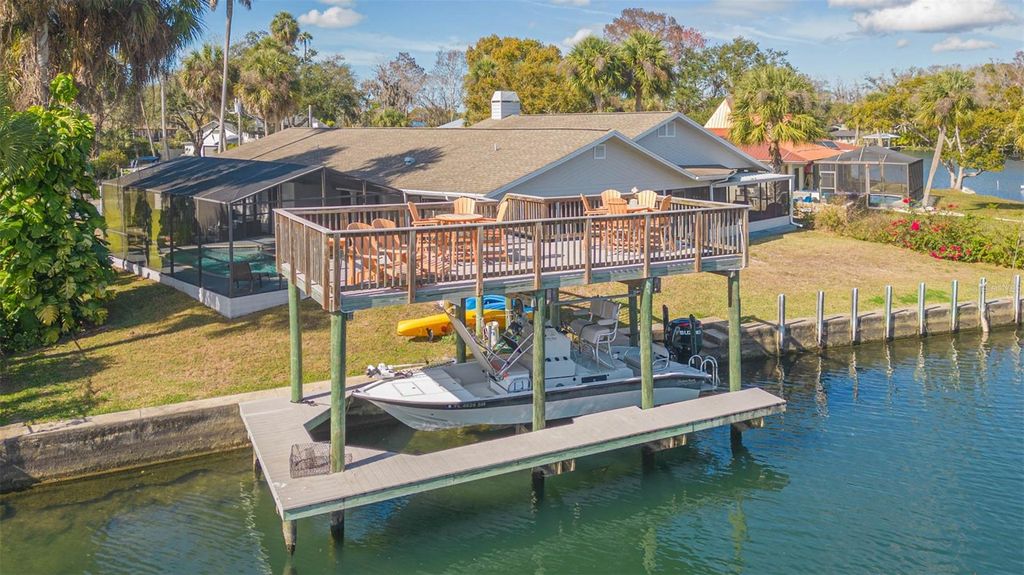 Rare find on the picturesque Homosassa River. This extra special home features the best water front location only 1250 feet from the crystal blue springs of the Homosassa River. Water frontage is in a minimum wake speed zone offering quiet enjoyment with limited waves from boat traffic. Lot sits on a peninsula which also buffers waves. HOME DID NOT FLOOD DURING RECENT HURRICANES and lot was elevated with fill at the time the home was originally constructed. Floor plan is perfect for entertaining guests with window placement emphasized on the river front view. Enjoy spotting manatees, birds, and abundant fish or sunbathing from the 12'x26' observation deck which also covers the boat dock equipped with electric and boat lift. Kitchens and baths feature granite counter top surfaces. Quality ANDERSON brand double pane custom windows offer energy savings and home interior comfort. The living room boasts vaulted ceilings with exposed beams and a wood burning fireplace for ambiance. Very spacious 182 sq ft master bath features dual sink vanity, double closets, and a skylight that drenches it with natural light. Chefs kitchen includes custom cabinetry, double wall oven, smooth cooktop, and large breakfast bar. Enjoy your favorite cocktail while relaxing in the salt water, heated pool. Exterior features include brick paver circular drive, concrete seawall, and concrete parking pad for boat or RV. Lot is quietly situated near the end of a dead end paved street with no through traffic.