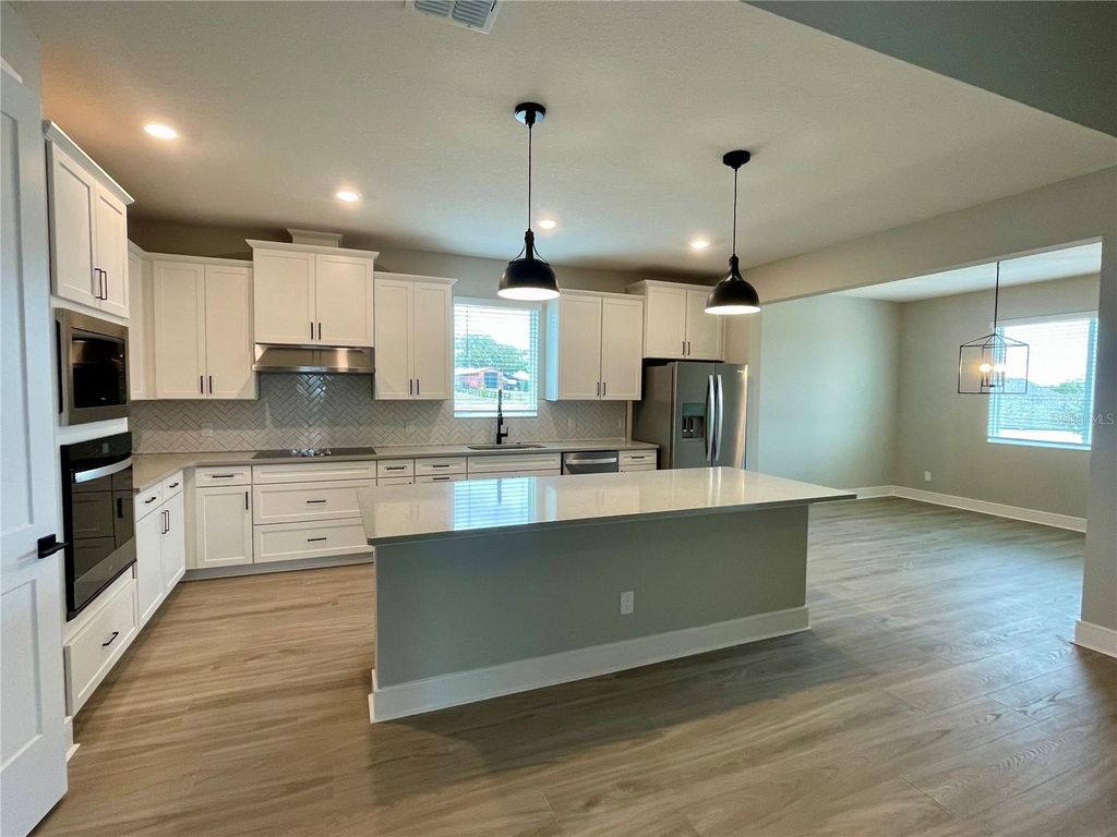 Introducing the Leland at Saddle Hill by Terrata Homes - Fruitland Park Welcome to the Leland, a beautifully designed four-bedroom, two-bath home located in the brand-new Saddle Hill community in Fruitland Park. From the moment you arrive, the inviting covered front porch sets the tone for a home that feels both warm and thoughtfully designed. Inside, the foyer opens to an expansive family room that serves as the heart of the home. The kitchen, dining, and family areas blend seamlessly into one cohesive gathering space"”perfect for everyday living and entertaining alike. A large center island anchors the kitchen, offering the ideal spot for morning coffee, after-school snacks, or evening gatherings. Quartz countertops, bright white cabinetry, stainless steel appliances, a beautiful tile backsplash, and a spacious pantry combine style and functionality. Sliding glass doors extend the living space outdoors to a covered outdoor kitchen, creating the perfect backdrop for relaxed evenings and effortless entertaining. The private owner's suite is tucked quietly toward the rear of the home, offering a peaceful retreat. The generous bedroom provides ample space for a sitting area or statement furnishings, while large windows invite in soft natural light. The spa-inspired bath features dual vanities, a walk-in shower, and two spacious walk-in closets for exceptional organization. Secondary bedrooms are positioned on the opposite side of the home, offering both privacy and flexibility. Additional highlights include luxury vinyl plank flooring throughout the main living areas, elevated lighting and plumbing fixtures, clean architectural trim details, blinds throughout, a separate laundry room, a covered front porch, and a two-car garage. Saddle Hill is nestled among the quiet, tree-lined landscapes of Fruitland Park, offering a peaceful setting with convenient access to everyday amenities. Just minutes away, enjoy the scenic shores of Lake Griffin, beautiful golf courses, charming local cafés, boutiques, restaurants, farmers markets, art walks, and live music events"”where small-town charm meets thoughtfully elevated living. Join us for our Grand Opening on March 28th and experience Saddle Hill for yourself.