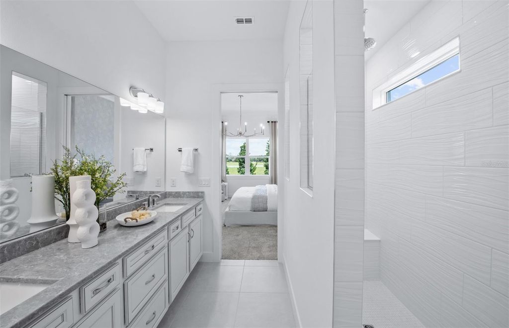 Under Construction. Enjoy all the benefits of a new construction home in the serene setting of Ocala, FL's horse country, with an age-restricted, fully amenitized lifestyle at Del Webb Stone Creek. This is the active adult community you've been looking for, with amenities that include an 18-hole championship golf course, a full restaurant and bar, indoor and outdoor pools, sports courts, and so much more. Our sprawling amenities, clubs, and classes will fill your retirement days with activities to make new friends and memories. The elegant Palmary floor plan is designed for effortless entertaining, featuring a connected kitchen, café, spacious gathering room, and versatile enclosed flex room. The generous kitchen offers abundant counterspace, a walk-in pantry with shelving, single-bowl sink with upgraded faucet, white cabinets, 3cm quartz countertops, and a 4"x16" tiled backsplash. Stainless steel appliances by KitchenAid include a range, microwave, and dishwasher. Bathrooms feature matching white cabinetry and 3cm quartz countertops, with dual sinks and a walk-in shower in the Owner's bath. Luxury vinyl plank flooring flows through the main living areas, flex room, and bedrooms, complemented by 22"x22" tile in the baths and laundry room. Additional upgrades include a covered lanai with screen, tray ceiling in the Owner's suite, 2-car garage with 4' extension, LED downlights and floor outlet in the gathering room, laundry room cabinetry with quartz counters, 8' interior doors, two-tone interior paint, brushed nickel lighting and hardware, and a Smart Home package with video doorbell. Enjoy peace of mind with Pulte's transferable, 10-year Limited Structural Warranty that covers materials and workmanship in the 1st year, workability of plumbing, electrical, HVAC, and other mechanical systems through the 2nd year, various types of water infiltration and internal leaks through the 5th year, and the structural integrity of the home through the 10th year. Plus, we're currently offering limited-time incentives and below-market rates!