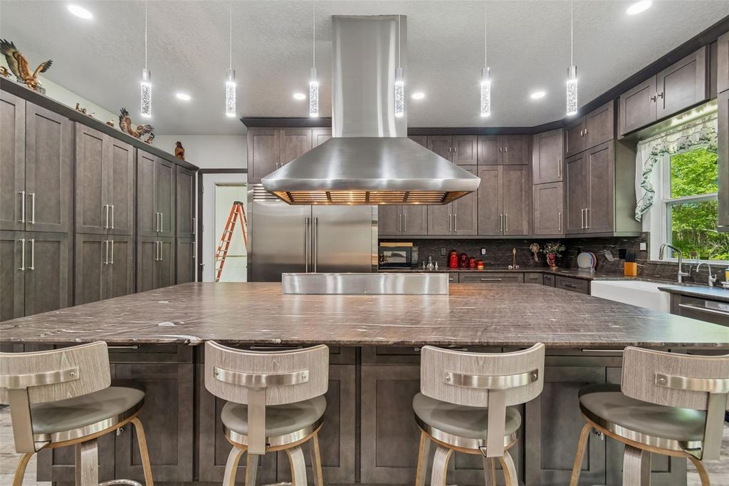 Experience a rare blend of strength, sophistication, and thoughtful design in this custom-built, turnkey "forever home" crafted for both luxury living and lasting durability. Constructed with full poured concrete block, reinforced with rebar, enhanced by spray foam insulation, and topped with a hole-free metal roof, this residence delivers exceptional energy efficiency and long-term peace of mind. Inside, soaring 10-foot ceilings and 8-foot doors create a bright, open feel, while luxury vinyl plank flooring and seven 65-inch Minka fans add both style and comfort throughout. The gourmet kitchen is truly the heart of the home, featuring an impressive 10x6 seamless center island, Saddleback leathered granite countertops, and a farmhouse Kohler sink paired with Brizo fixtures. Custom cabinetry includes 42" upper cabinets and a full wall of 48" lower cabinets, all with soft-close features for a refined finish. High-end, professional-grade appliances include a 48-inch Capital gas range with dual ovens and griddle, a Frigidaire Professional stainless steel louvered double trim kit refrigerator (33" wide refrigerator 33" freezer, 18.6 cubic feet deep), and a Café double-drawer dishwasher"”perfect for both everyday living and entertaining. Designed with privacy in mind, the split-bedroom layout showcases an expansive primary suite complete with a custom quartz walk-in shower, dual sinks, and a spacious walk-in closet equipped with a ventless Miele washer and dryer. A hidden 11x10 safe room adds an exceptional level of security and versatility. Car enthusiasts and travelers alike will appreciate the truly one-of-a-kind oversized garage measuring 2500 sf, engineered to accommodate a Prevost motorhome, complete with 50-amp service and a 220V hookup for an air compressor. The garage also houses the swamp system well, water softener along with a half bath already plumbed for a future shower. The septic has a brand-new 1 horse macerator pump. A whole-house generator, conveniently located in the garage, is ready to be installed and adds an extra layer of reliability and preparedness. Adding even more value and flexibility, a massive 46x11 bonus room sits above the breezeway, already fully air-conditioned and featuring approximately 10.5-foot ceilings"”ready to be finished to suit your needs. The fully fenced and gated property features a solar-powered entry and 4K wireless solar security cameras, offering both privacy and modern security. A storage shed provides additional functionality for tools or equipment. This exceptional home is a rare opportunity to own a residence that seamlessly combines specialized functionality with elevated, high-end living.