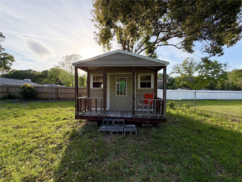 Prime location with a fenced lot in Ocala. This property is perfect for investment or rental. Nice .30-acre lot with mature trees and landscaping. This is a fixer upper and will need to be rehabbed to make it a cute home again!! ROOF 2023!! This home features 3 bedrooms, 1 bathroom, 800 sqft, a covered front porch, accessible ramp, kitchen, living room, dining area, drive-thru gate to the backyard, window unit AC, and double parking. Shed 8x19 in great condition is included. NO HOA! Convenient location near shopping, medical and restaurants.