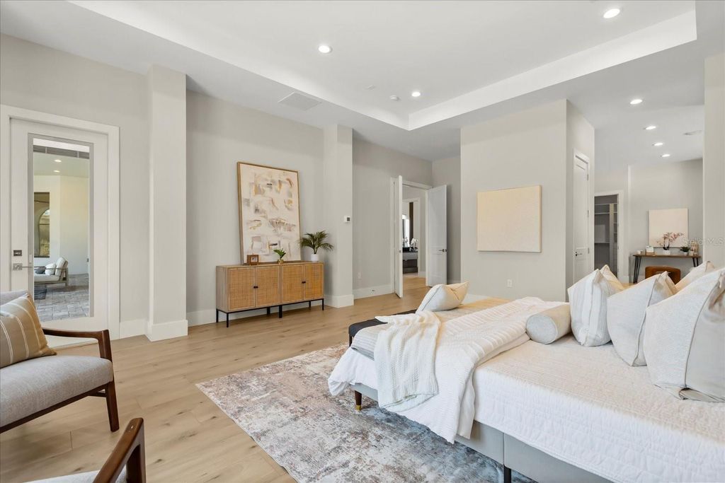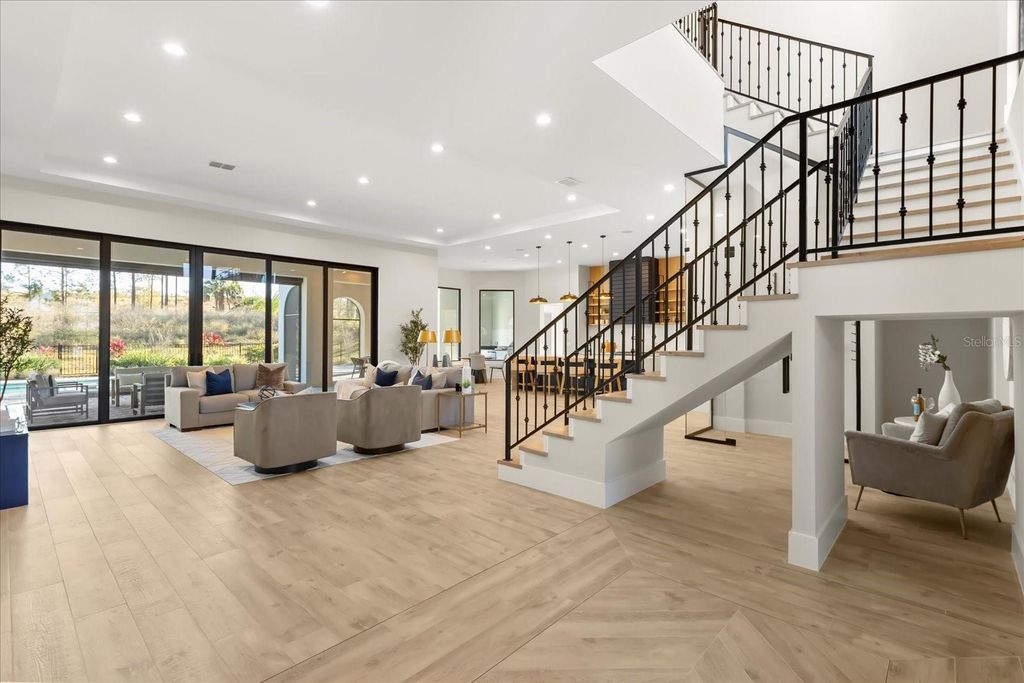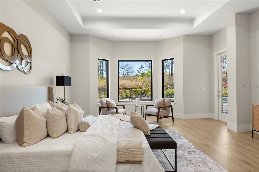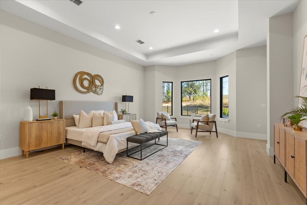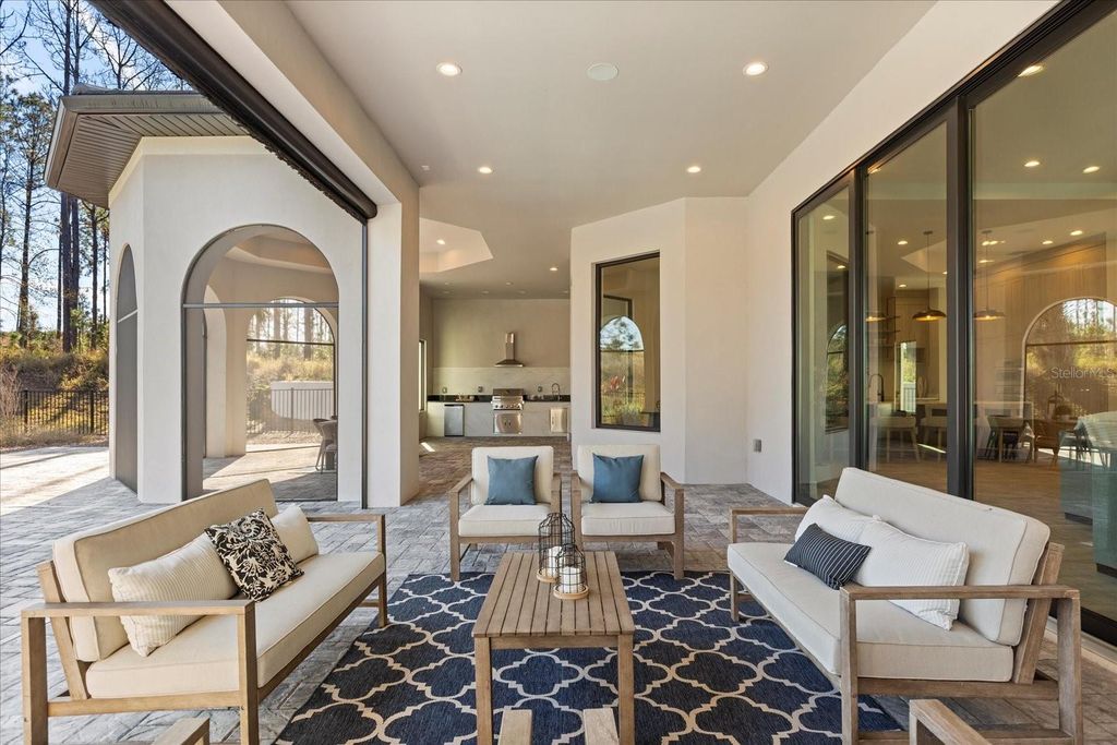Move-in ready two-story custom home including all furnishings on a one acre preserve homesite in the exquisite guard gated golf community of Bella Collina. Upon entering this home you are greeted with a semi-formal entry that opens to the expansive great room with an abundance of light coming through the 5 panel sliders that overlook the pool and lanai areas. The custom designed gourmet kitchen with wood trim accents throughout boasts a large island overlooking the great room. Appliances include Thermador 6 burner gas range, custom built hood, fridge with matching front cabinet facing, pot filler, oversized walk-in pantry, and large breakfast nook in addition the formal dining room and dry bar area. A corner wine wall adds the elegance of the great room. The first-floor primary bedroom offers an owners coffee bar with beverage fridge. Large bay windows stream plenty of natural sunlight with a sitting area overlooking the pool and lanai. The ensuite bathroom features dual side entry shower with two rain heads, double vanity, soaking tub and two walk in closets. Three additional bedrooms and loft on the second floor are perfect for additional family members or guests. The oversized lanai and backyard living areas are ideal for entertaining with several covered sitting and dining areas and remote-controlled screens. The outdoor kitchen and grilling areas have plenty of counter space, a fridge with sink and easy access to the main kitchen. A 1st floor office can also double as a guest room. The club at Bella Collina offers year-round culinary and social activities for all ages. . Enjoy a round of golf on the Nick Faldo designed golf course or wind down at one of the restaurant terraces. Additional amenities include Har-Tru tennis facility, pickleball., outdoor pool complex, spa and fitness center with an array of complimentary fitness classes. Call today to learn more about this incredible home at Bella Collina. The $40,000 Sports Membership Deposit is included from the Seller. Seller will provide a one year warranty to Buyer at Closing