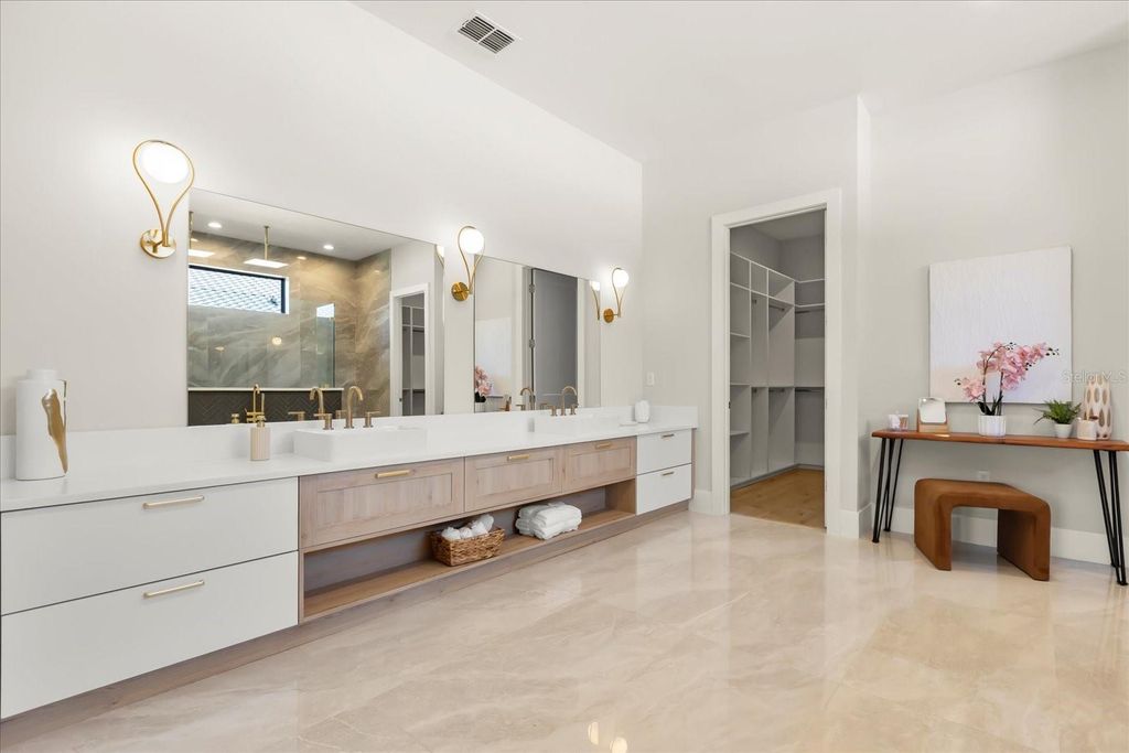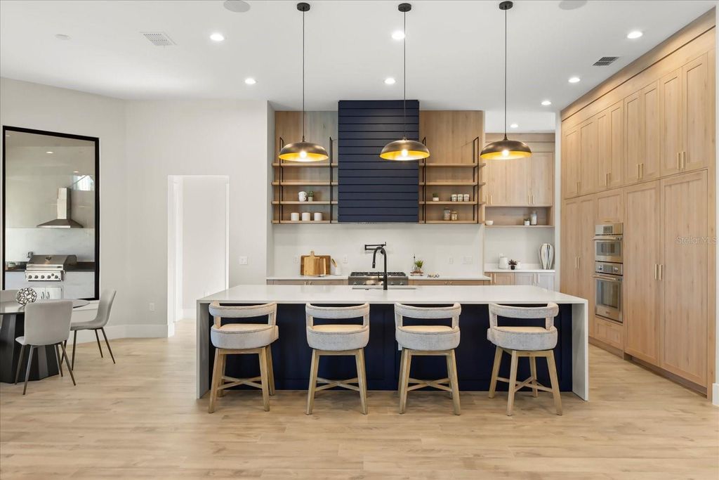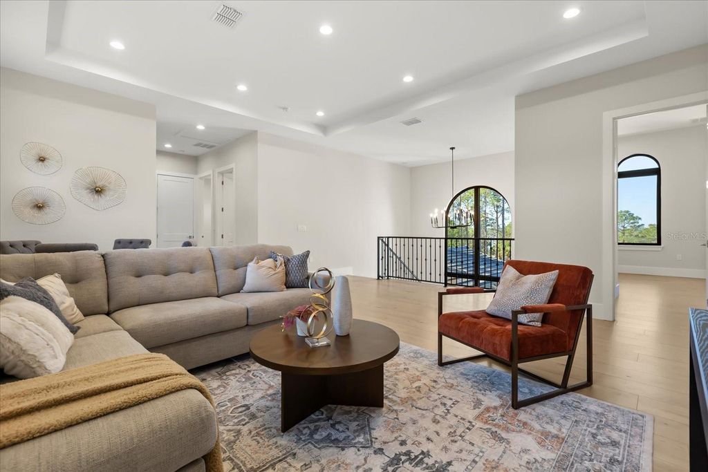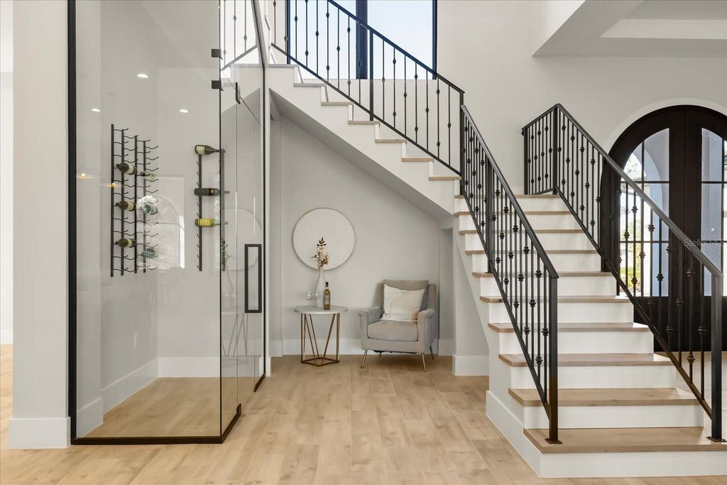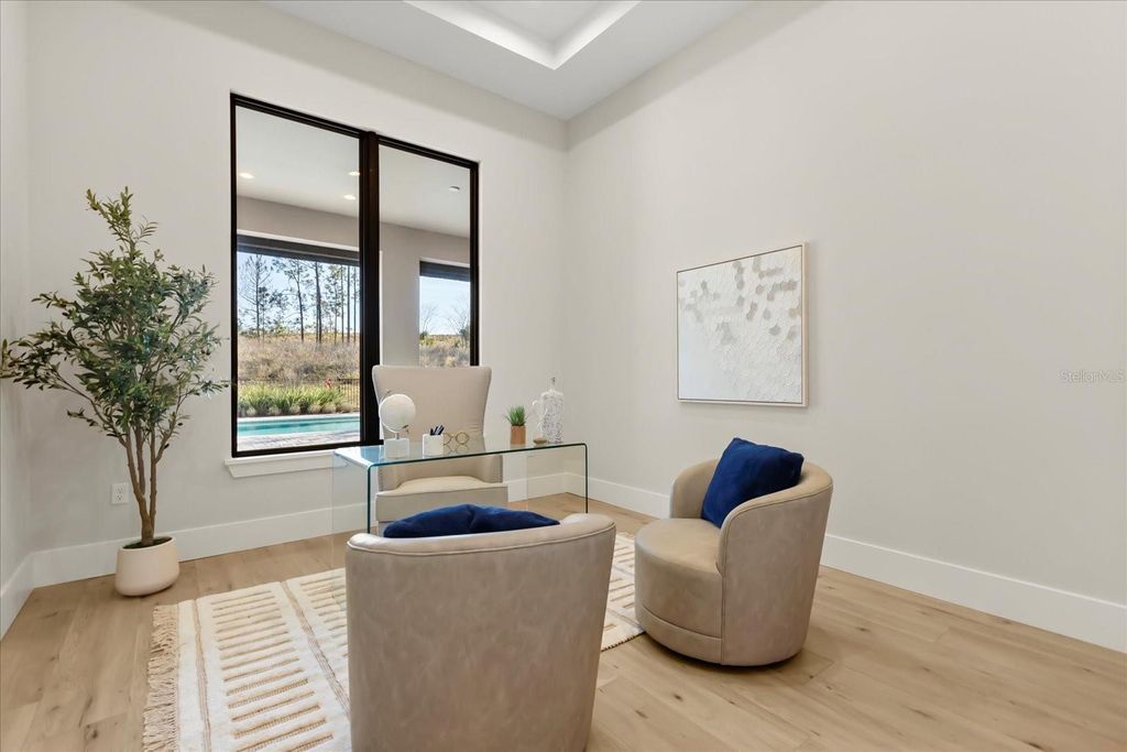 Move-in ready two-story custom home including all furnishings on a one acre preserve homesite in the exquisite guard gated golf community of Bella Collina. Upon entering this home you are greeted with a semi-formal entry that opens to the expansive great room with an abundance of light coming through the 5 panel sliders that overlook the pool and lanai areas. The custom designed gourmet kitchen with wood trim accents throughout boasts a large island overlooking the great room. Appliances include Thermador 6 burner gas range, custom built hood, fridge with matching front cabinet facing, pot filler, oversized walk-in pantry, and large breakfast nook in addition the formal dining room and dry bar area. A corner wine wall adds the elegance of the great room. The first-floor primary bedroom offers an owners coffee bar with beverage fridge. Large bay windows stream plenty of natural sunlight with a sitting area overlooking the pool and lanai. The ensuite bathroom features dual side entry shower with two rain heads, double vanity, soaking tub and two walk in closets. Three additional bedrooms and loft on the second floor are perfect for additional family members or guests. The oversized lanai and backyard living areas are ideal for entertaining with several covered sitting and dining areas and remote-controlled screens. The outdoor kitchen and grilling areas have plenty of counter space, a fridge with sink and easy access to the main kitchen. A 1st floor office can also double as a guest room. The club at Bella Collina offers year-round culinary and social activities for all ages. . Enjoy a round of golf on the Nick Faldo designed golf course or wind down at one of the restaurant terraces. Additional amenities include Har-Tru tennis facility, pickleball., outdoor pool complex, spa and fitness center with an array of complimentary fitness classes. Call today to learn more about this incredible home at Bella Collina. The $40,000 Sports Membership Deposit is included from the Seller. Seller will provide a one year warranty to Buyer at Closing