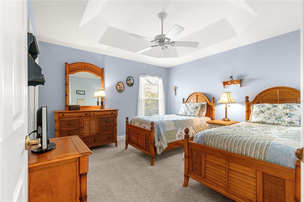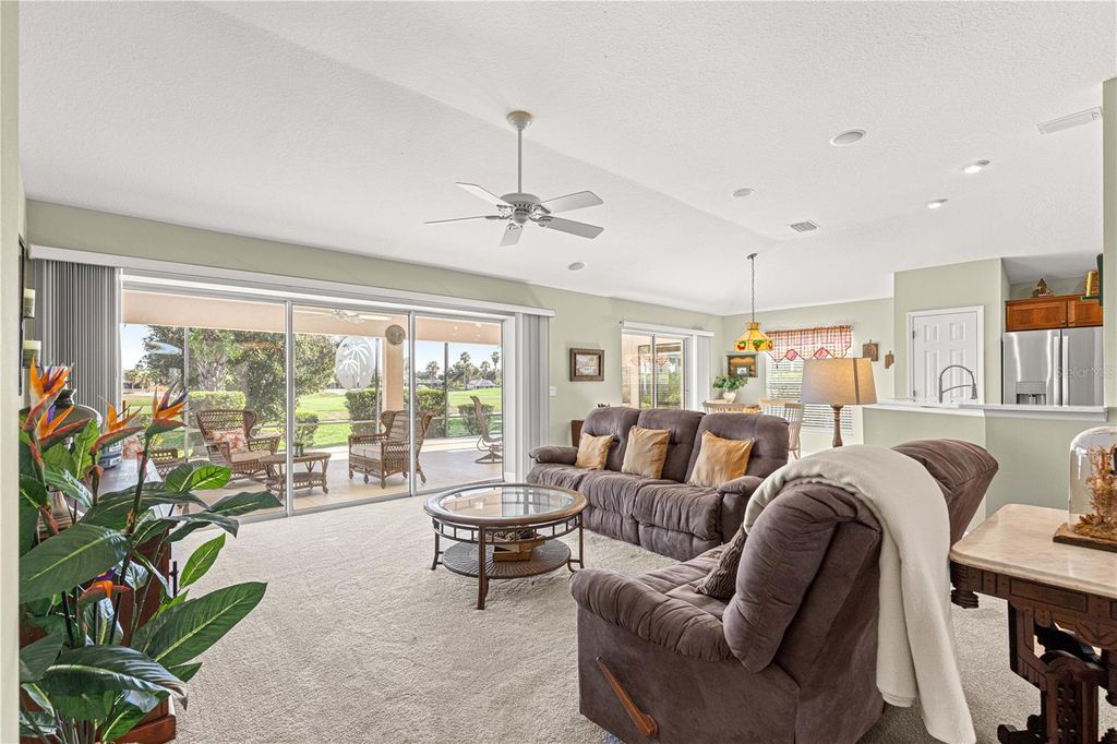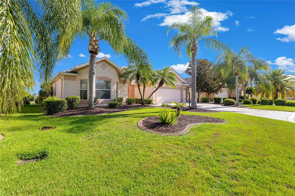 No Bond. This house is located just off of Canal street which gives you a direct short drive to Sumter Landing by golf cart or by car. This gorgeous Lantana was barely lived in and ready for it's new owner. The Bacall Golf Course that is behind this home has just been redone and the first tee box is straight out from your lanai. As you drive up to this beautiful home you will notice the extended garage with extended golf cart garage, upgraded landscaping that is all stone, the gorgeous paver driveway, and the added power screens on the garage doors. As you walk to the front door again you will notice the manicured landscaping and as you enter the front door you will be able to feel the openness of the home and all the great space you have to entertain a great group of friends or family. The very large and open concept allows you to be part of the conversation no matter what area of the great room that you are in. The kitchen is a cooks dream with the brand new quartz counters and the brand new kitchen appliances and the Gas Stove would make any cook want to stay in the kitchen to make that very special dish. The laundry room directly off the kitchen has plenty of space to fold and iron with a built in ironing board and also plenty of storage. The split floor plan allows your guests to have privacy and quietness from the rest of the home. The two full spare bedrooms and full bathroom with upgraded Quartz gives your guests the luxury of feeling like being on vacation with great friends. As you enter the master bedroom you will notice the large space for all of your furniture in addition to the walk in closet. The master bathroom has the quartz upgrade a beautiful walk in shower and a great bathtub for soaking and forgetting about your troubles. The Lanai has been extended freshly painted, an outdoor Kitchen added, and a lovely swim spa for watching the best sun set in The Villages. The roof was replaced 8/2025 The A/C was replaced 2019 and the Hot water heater was replaced 2018. Seller will include a 1 year home warranty from BFS. Don't wait houses like this go fast. Call today for a private showing