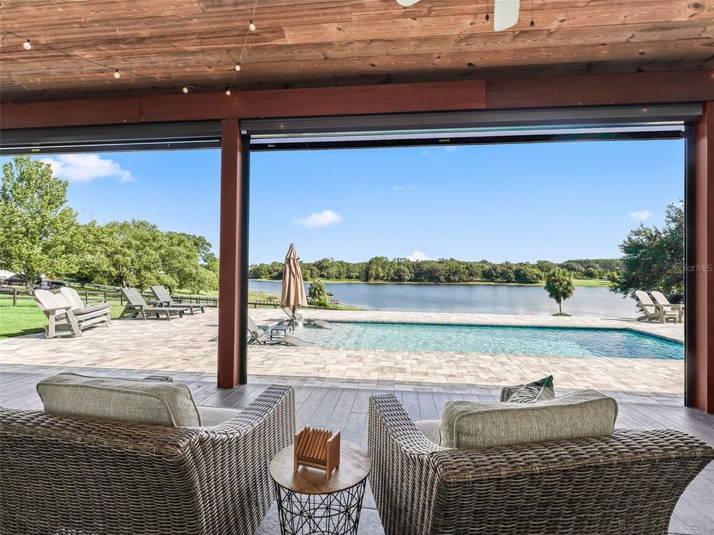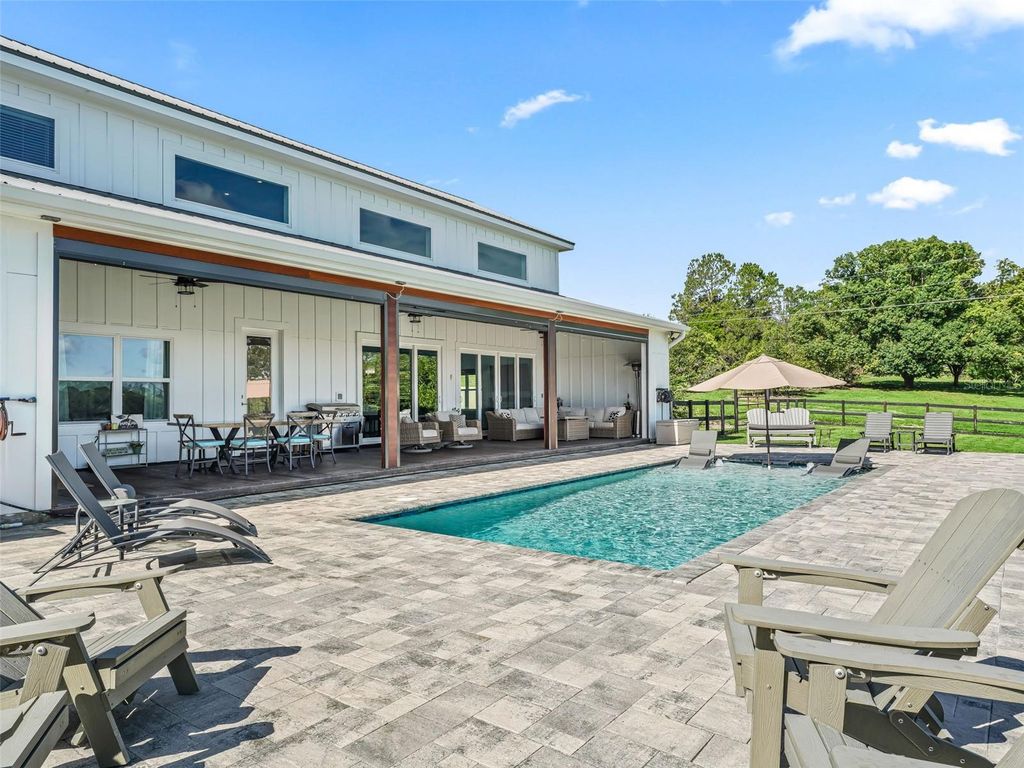 Hilltop Haven with Stunning Lake Views - 3.74 Acres in Weirsdale, FL Perched high above the shoreline of spring-fed Saddlebag Lake, this breathtaking 4-bedroom, 3.5-bathroom custom-built modern farmhouse offers a barndominium-style design that blends rustic charm with contemporary luxury. The open floor plan boasts soaring 20+ ft ceilings in the main living area, a spacious loft sitting area, and an entertainer's dream chef's kitchen featuring a striking 15-foot island, dual-fuel stove with propane cooktop & electric oven, and premium finishes. From the living area, enjoy panoramic views that stretch over the sparkling pool to the tranquil waters of the lake. Step outside to your expansive covered back porch with remote-control screens, where you can relax in the gentle breeze and take in 150 feet of private lake frontage. Additional features include: "¢ Barn and chicken coop with resident chickens for a true farm-to-table lifestyle "¢ Solar panels for energy efficiency "¢ Two gas Rinnai tankless water heaters "¢ 3.74 acres of private, gently rolling land with no HOA Whether you're sipping coffee on the porch, fishing on the lake, or hosting gatherings in your expansive living spaces, this property offers a rare blend of comfort, style, and natural beauty "” all just minutes from The Villages.