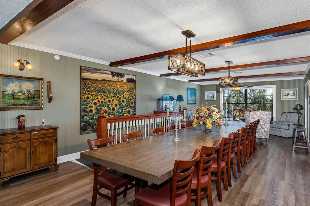 LIFE IS BETTER AT THE LAKE "” YOUR WATERFRONT RETREAT AWAITS Welcome to a place where mornings begin with mist rising over the water and evenings end under a canopy of stars sitting around the campfire. Tucked away on a private dead-end road, this updated 4-bedroom, 4.5-bath waterfront estate is more than a home"”it's a lifestyle designed for family fun, memory-making, and pure Central Florida relaxation. A Home Designed for Togetherness but large enough to have your own space Step onto the large rocking-chair front porch and feel the stress melt away. Inside, the home opens into expansive gathering spaces, including a massive kitchen, dual living areas, and a stunning 16-seat dining room where holidays, reunions, and celebrations come to life. With two kitchens and two separate entrances, and sleeping capacity for 16 guests, this property is ideal for hosting large groups"”or even running as a turn-key B&B if you want income while not using the home year-round. Entertainment for Everyone Whether you're lounging or laughing, you'll never run out of things to do: 17-seat movie theater for unforgettable movie nights Full private bar with seating for 20 Piano & karaoke stage for the brave (or the bold!) 15x30, 6-ft-deep heated pool inside a 1,700 sq. ft. screened enclosure Huge backyard for camping, smores by the fire pit, or an exciting backyard game of volleyball or relaxing games of cornhole, horseshoes, badminton or croquet. This is the kind of property where kids disappear for hours and adults rediscover fun again. Your Gateway to Lake Life, situated on a high & dry 1.2-acre lot with 200 feet of water frontage, your backyard provides a 3-minute boat ride to the 9,000-acre+ Lake Griffin, part of the renowned Harris Chain of Lakes"”home to world-class bass fishing and endless water adventure. The property includes: Adventures begin the moment you step outside. Close to Everything, Yet a World Away Only 8 miles to The Villages, with shopping, restaurants, doctors, and Spanish Springs Square just minutes from your door. Want more? Within 20 minutes, you'll find multiple town squares with free live music 365 evenings a year. Pool Heater, Range, dryer and outdoor barbeque powered by LP gas Plus, top Florida attractions are surprisingly close: 45 min to Silver Springs glass-bottom boat tours Back-yard access to 76,000 acres of 7 inter-connected fresh-water lakes 1 hr 15 min to Disney & Universal, Quick access to the World Equestrian Center, and Orlando airport 1 hr. 30 min to Daytona Beach 2 hrs. to Clearwater Beach, Tampa Hard Rock Casino & Bucs Stadium A 700 sq. ft. garage allows space for your workshop, vehicles, or water toys, and the expansive driveway fits multiple cars or a friendly game of one-on-one hoops. If you want flexibility, privacy, income, or multigenerational living with separate In-Law living quarters. Best of all, No HOA rules or fees. Recent updates include new roof, exterior paint and gutters and pool pump in 2025 This Isn't Just a Home It's a Destination Whether you dream of sunset boating, poolside afternoons, or evenings around the fire pit, this property invites you to slow down and enjoy Florida living at its finest. What will you do first? If you have a seaplane with folding wings for taxiing, you can moor it in the water behind the home or backyard