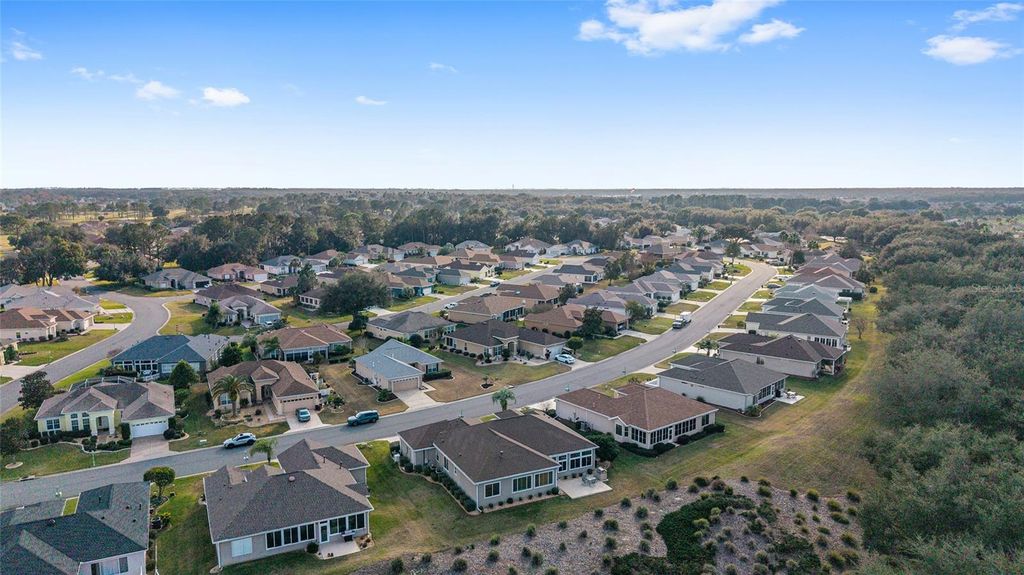 First time on the market, this beautifully maintained Hampton model offers 3 bedrooms, 2.5 baths, and an exceptional list of upgrades. The kitchen features quartz countertops, newer appliances, a gas cooktop, 42" oak cabinets, a skylight, and ceramic tile flooring.You are welcomed by double leaded-glass entry doors, set off by a designer-painted driveway and walkway with professionally maintained landscaping. Inside, the foyer opens to the dining room on the right, the living room straight ahead, and continues into the kitchen and family room. Ceramic tile flooring runs throughout the home, with engineered wood floors in all bedrooms. Plantation shutters are featured in nearly every room. The Florida room includes built-ins and a gas fireplace and is positioned for easy viewing from the kitchen, creating an ideal layout for everyday living or entertaining. The primary suite offers bay windows and a ceiling fan, while the ensuite bath includes a separate shower, soaking tub, double vanity with cultured marble countertops, and plantation shutters.The second bath has been completely remodeled with a walk-in shower and newer vanity. The utility room has been adapted for office use and includes abundant overhead cabinetry. The large, glass-enclosed lanai is equipped with a split HVAC system installed in 2022. Additional highlights include a spacious garage with a dedicated golf cart area with overhead door (or equivalent storage/workshop space), designer-painted garage floor, washer and dryer, and utility sink. Major updates include a new roof (2021), two HVAC systems (2021), Rinnai tankless hot water heater (2021), and a Generac whole-house generator (2021). The home has been meticulously cared for. Furniture is available separately.