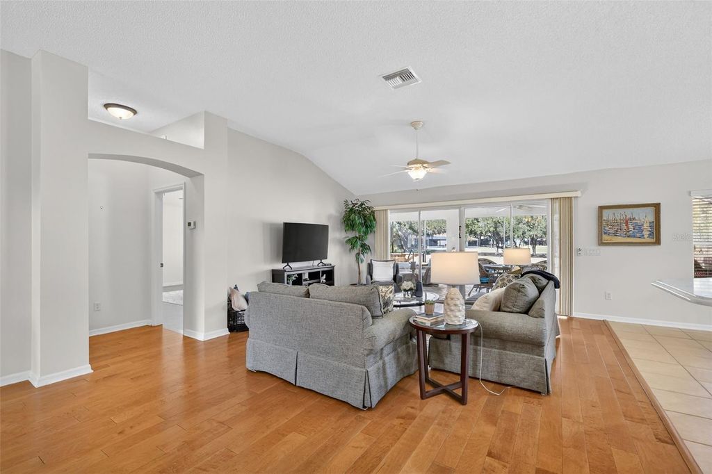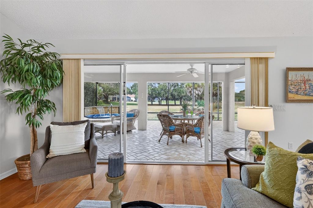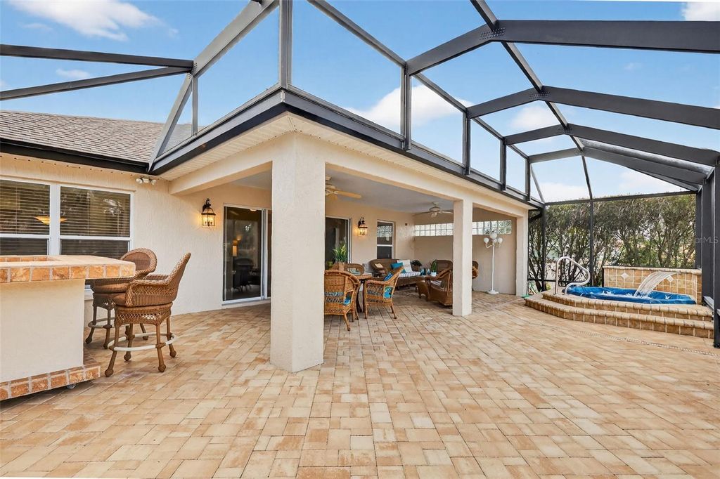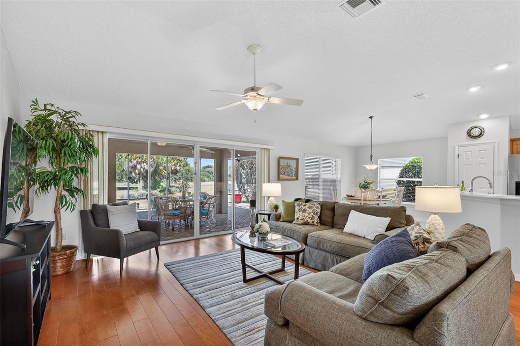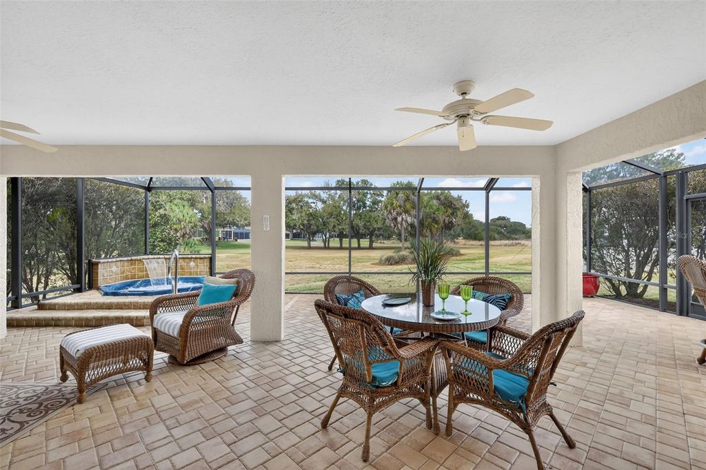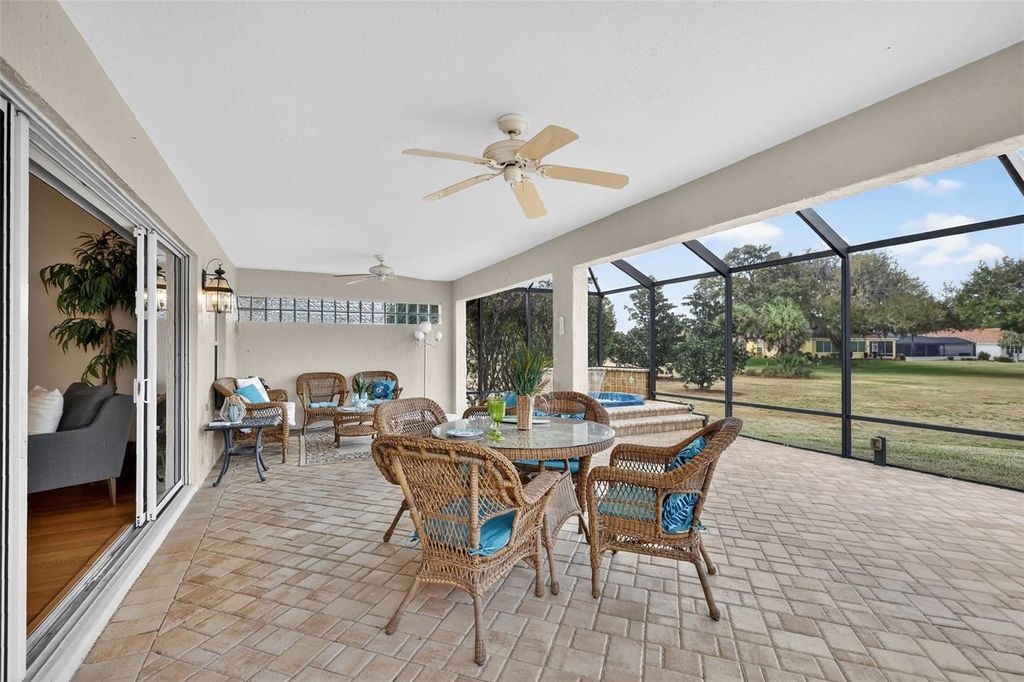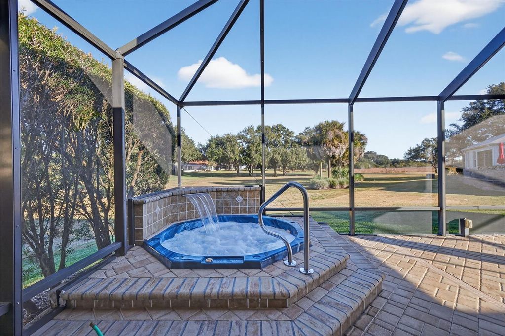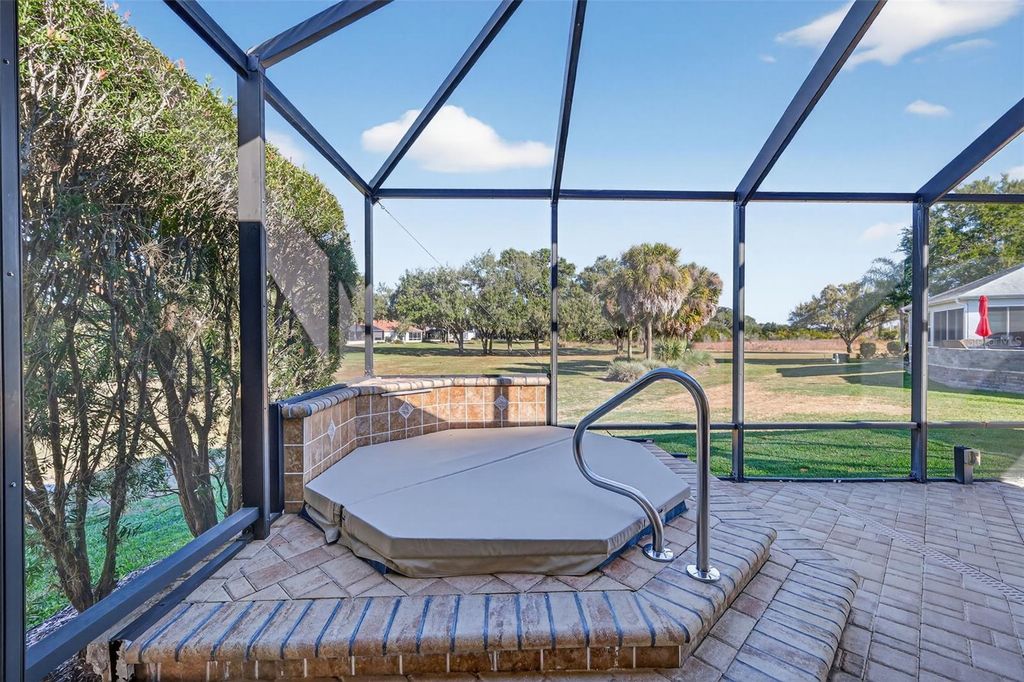 Perfectly positioned in the heart of The Villages in the Village of Sunset Pointe, this exceptional home offers the rare combination of central location, golf-cart convenience, PRIVACY, and PREMIUM VIEWS. Located just minutes by golf cart from Lake Sumter Landing, residents enjoy easy access to nightly entertainment, waterfront dining, shopping, and everyday conveniences"”including ALDI"”all without the need to drive. Set on an oversized 0.26-acre lot, this property stands apart from surrounding homes with no rear neighbors. The expansive setting provides exceptional privacy along with breathtaking panoramic views of the Pelican Golf Course and preserve, creating a peaceful backdrop rarely found in such a central Villages location. The thoughtfully designed home offers 3 bedrooms, 2 bathrooms, and 2,044 square feet of living space, complemented by a 3-car garage with dedicated golf cart space"”a must-have for Villages living. Built in 2005 and offered with NO BOND, this home delivers both comfort and long-term value. Outdoor living is enhanced by a custom hot tub under a 36x22 foot birdcage, allowing you to relax and unwind year-round while enjoying the open views and privacy of the oversized lot"”without the expense, maintenance, or insurance considerations of a full-size pool. Homes offering this combination of central location, oversized private lot, golf course and preserve views, custom hot tub, and golf-cart accessibility are increasingly rare. This is a standout opportunity to enjoy the very best of Villages living"”convenient, connected, and quietly private. Many extra UPGRADES including: ROOF 2020, BRAND NEW STAINLESS STEEL APPLIANCES 2026, CUSTOM PAVERS, HARDWOOD FLOORS in main living area and master bedroom, custom cabinets and Murphy bed in guest bedroom. Inquire for a complete FEATURES list. Please view the 3D walkthrough of this exceptional home. Call today to schedule your private showing.