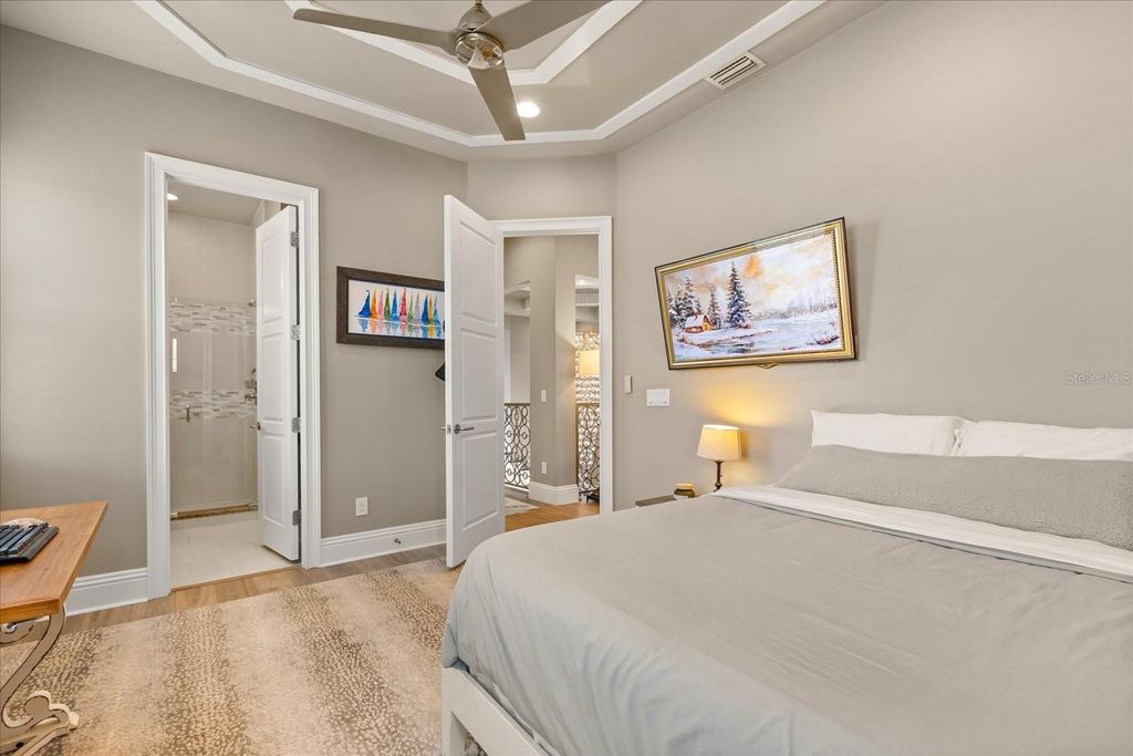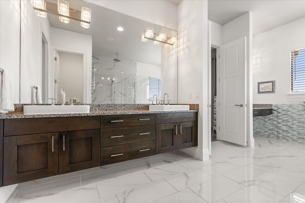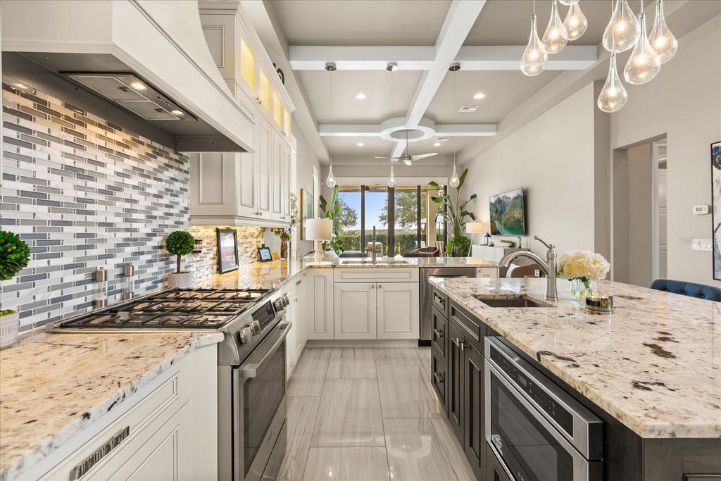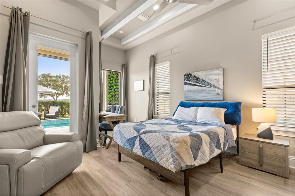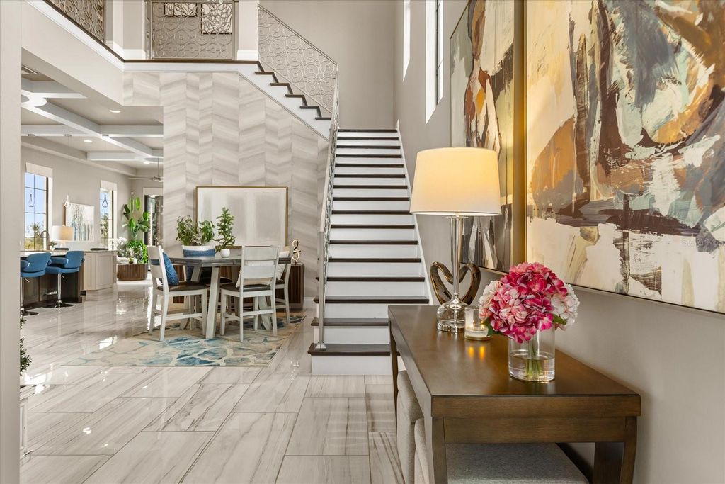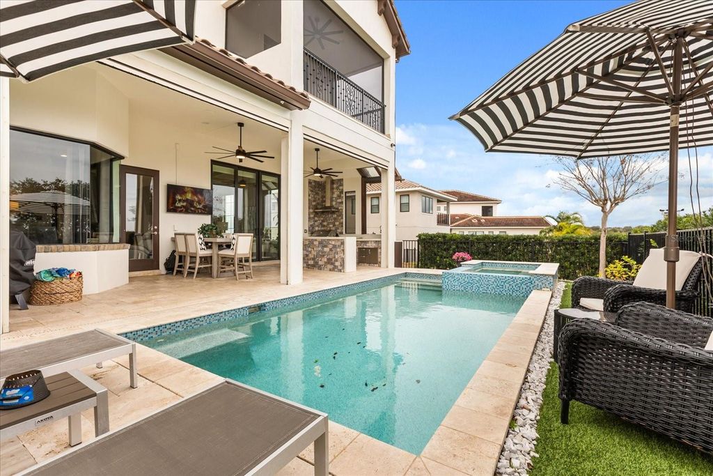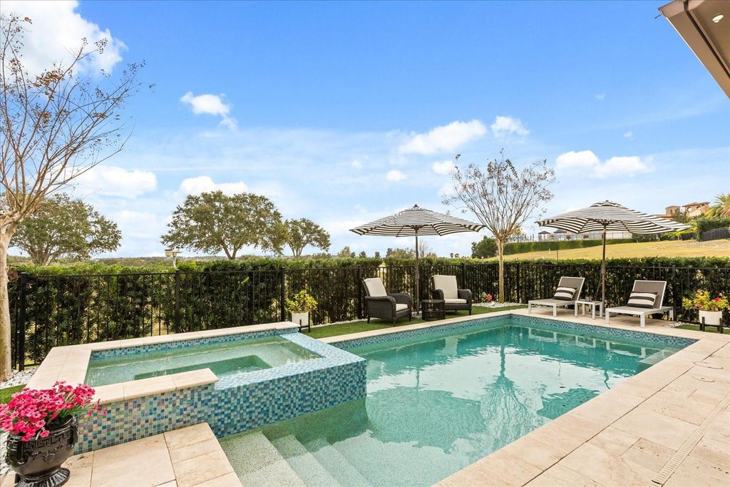 Move in ready exquisite custom home masterfully built by the renowned Vogel Building Group, is perfectly situated in Bella Collina"”Central Florida's most exclusive private gated golf community offering an unparalleled lifestyle. Upon entering, you'll be greeted by stunning detail, dramatic high coffered ceilings, and an abundance of natural light that illuminates clean architectural details, elegant designer lighting, and luxurious tile floors throughout. The thoughtful layout includes two expansive primary suites"”one on each level, providing exceptional privacy for guests. Each suite boasts resort-style bathrooms, double vanities, spacious walk-in closets, and convenient access to laundry facilities on both levels. The chef-inspired gourmet kitchen impresses with top-tier cabinetry, sleek granite countertops, and striking statement lighting. A bespoke under-stair wine bar adds a touch of sophistication and practicality, perfect for hosting gatherings. Upstairs, a welcoming loft lounge overlooks the main living area below, creating an inviting space for relaxation or casual family get-togethers. Step outside to your own private paradise: a shimmering pool, outdoor summer kitchen, vibrant tropical landscaping, and a fully motorized screened lanai that effortlessly blends indoor and outdoor living. From the second-floor balconies, savor breathtaking sunrises overlooking the pool, or gorgeous sunsets from the front Juliette balcony. Many upgrades have been recently been added to the home. Just steps away, the magnificent Bella Collina Clubhouse delivers an unparalleled country club lifestyle, complete with multiple fine dining venues, spa, Har Tru tennis courts, newly renovated pickleball courts, state-of-the-art fitness facilities offering twenty complimentary fitness classes a week, a magnificent outdoor pool complex and 18 hole Nick Faldo designed golf course with two driving ranges. Enjoy year round social and culinary events for all ages. Located just minutes from Montverde Academy and downtown Winter Garden with easy access to the Florida Turnpike, highways 429 and 408. Don't miss this opportunity to own a true masterpiece in one of Florida's premier resort-style communities! Seller is paying the $40,000 Sports Membership Deposit on behalf of Buyer at closing.