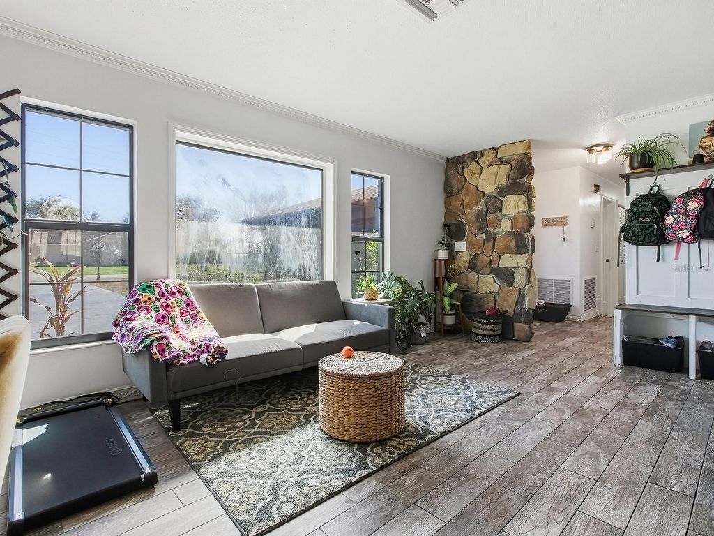 Florida living at its finest awaits you in this gorgeous pool home nestled in the sought-after waterfront community of King's Cove in Fruitland Park! This beautiful 4-bedroom, 2-bath residence offers comfort, space, and access to Lake Griffin (Harris Chain of Lakes) via the community boat ramp, so bring your fishing poles. King's Cove, conveniently located between The Villages and Leesburg on the Lake Harris Chain of Lakes, is a desirable waterfront community with NO HOA, just a few minutes from Lake Griffin State Park, offering abundant wildlife, and you're still close to shopping, dining, and excellent schools. As you step inside, you are welcomed by abundant natural light in the spacious formal living area, ideal for gathering with family and guests. The expansive kitchen is a chef's dream, featuring rich wood cabinetry, granite countertops, newer appliances, and ample counter space. A separate dining room provides ample space to host holidays and special occasions. The inviting family room is a true highlight, featuring an electric fireplace with charming brick accents and stunning views of the beautifully manicured landscaping and the screened-in pool area"” an ideal place to relax at the end of the day. The primary suite provides a peaceful retreat with generous space and elegant details. The en-suite bathroom features a luxurious soaking tub, a separate walk-in shower, dual vanities with wood cabinetry, and ample counter space. You will also enjoy the large walk-in closet. Located on the opposite side of the home, the guest bedrooms provide comfortable accommodations for family or guests. Enjoy Florida's year-round outdoor living from your screened-in lanai and patio, complete with a counter and sink, making it perfect for your summer kitchen. Step outside to your private oasis featuring a sparkling pool with brick accents, a decorative waterfall, and a relaxing spa. The fully fenced backyard offers plenty of space for play, and even more inviting, pull up a chair and gather around the comfortable fire pit to stargaze on beautiful evenings. In addition to the home's versatile interior spaces, the property includes a separate shed equipped with air conditioning and electricity, offering endless possibilities, such as a man-cave, she-shed, home gym, or office, just to name a few. The garage has been converted into an additional living area, which the sellers now use as a gaming room. Recent updates include all-new ceramic tile throughout the home, refreshed bathrooms with new vanities and hardware, all-new ceiling fans, a new AC system (2022) with warranty, a new hot water heater (2022), and freshly painted interior and exterior (2023). Well-maintained and move-in-ready, this exceptional property is waiting to welcome its next family. Call today to schedule a showing! All information is deemed accurate, but must be verified by the buyer's agent and buyer.
