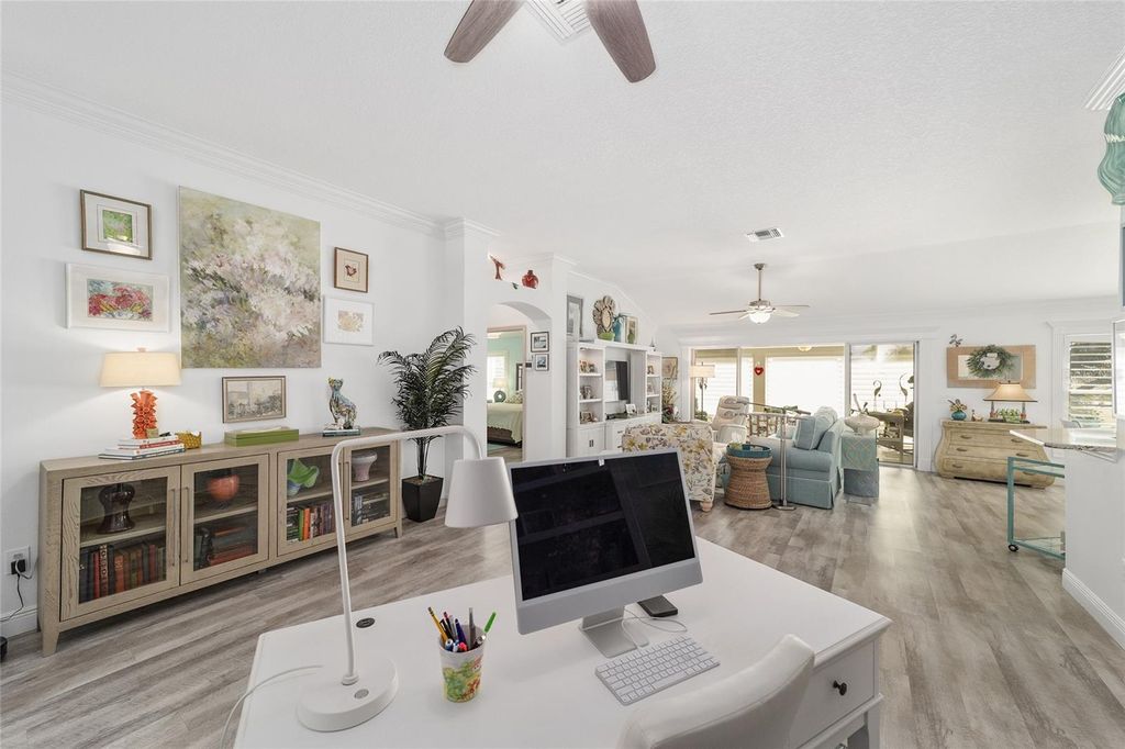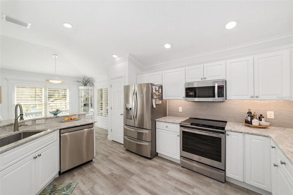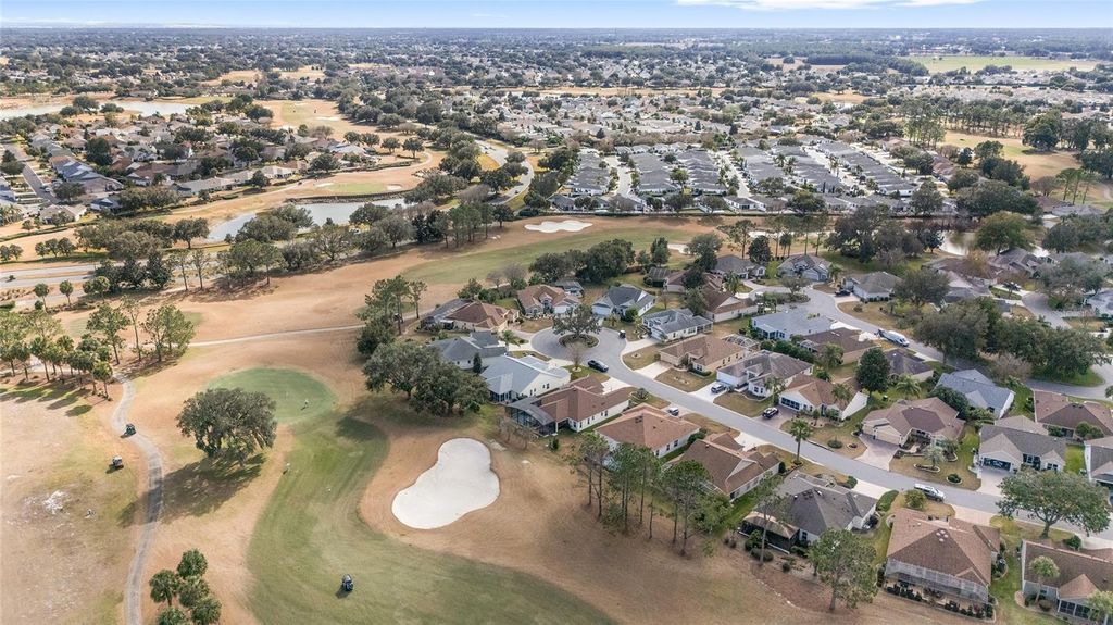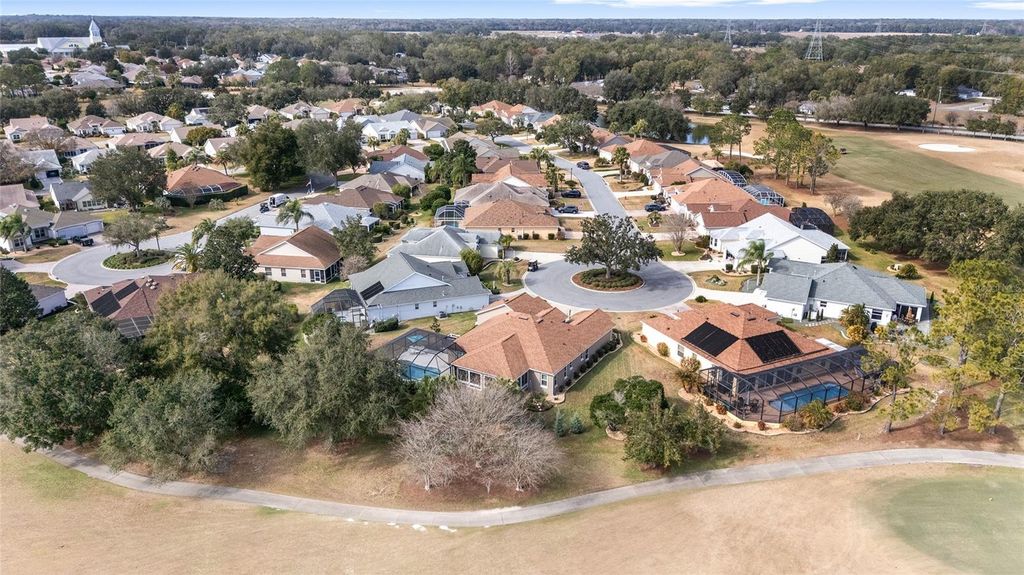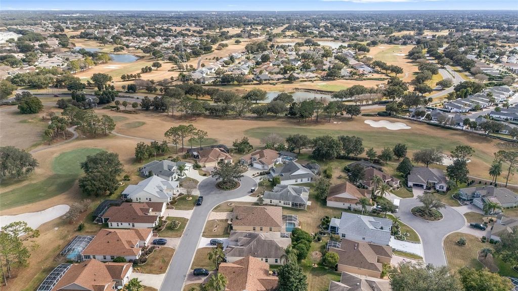 BOND PAID! Welcome to the tranquil north end of The Villages! The gorgeous 3/2 Live Oak (Lantana) is situated on the 6th fairway of Torri Pines championship golf course. This GOLF FRONT and POOL homesite has a backyard haven. The pool and private OUTSIDE SHOWER were installed in 2025. Located on an oversized lot, at the end of a cul-de-sac street in Calumet Grove has been impeccably updated from top to bottom. 4 ton HVAC (2024), ROOF (2022), NAVIEN TANKLESS WATER HEATER (2024), MITSUBISHI MINI SPLIT IN GARAGE (2024) The home includes a whole house water filtration system and a Solaris Air Filtration system (currently not connected). The interior was completely updated (2021). Light and bright kitchen cabinets, QUARTZ counters, STAINLESS appliances (2021), the INDUCTION stove and Kitchen's Reverse Osmosis system continue to impress. The inside laundry boasts a pantry and Speed Queen washer/dryer (2021), stunning high end FLOORING and 5" baseboards were also installed throughout the home. Crown molding also graces the living area. The updated bathrooms feature QUARTZ counters, JETTA STONE showers, and FRAMELESS GLASS enclosures. ALL lights and fans throughout the home and garage were updated (2024) The Closets and the pantry were customized by CLOSETS BY DESIGN. PLANTATION SHUTTERS were installed throughout the home. (2024). All the WINDOWS in the home were replaced with ANDERSEN WINDOWS (2023), Low E glass WINDOWS on the LANAI (2021), LANAI MINI SPLIT (2021) West facing WINDOWS tinted (2024), Exterior painted (2023), Additional INSULATION over the entire home (2024), updated paver driveway and walk (2023), The GARAGE, including the GOLF CART GARAGE have a custom floor. PULL DOWN stairs allow access to the abundant storage of the attic. The entire home has had extra INSULATION added (2024). To make the home even more inviting, the LOCATION is over the top. Hop in your golf cart for a quick trip to the area's 4 executive golf courses, the 3 championship courses of NANCY LOPEZ, the Calumet Adult Pool, Mulberry Regional Recreational Center and The First Responders Recreation Center. You are able to find Resort Style Pools, Pitch -N-Putt, Pickle Ball, Platform Tennis, Arcade, Beach Volleyball, Fire Pit, Bocce Ball, Horseshoe, Shuffle Board courses and more. Shopping at Mulberry Plaza, The VA CLINIC and numerous other medical opportunities, restaurants, and shops are a short cart ride away. It is also a quick trip to entertainment, shows, and more shopping at The Savannah Center, Spanish Springs and Sumter Landing Town Squares. Square footage information is taken from the Public Record and is deemed reliable, but not guaranteed. Room dimensions are approximate and not guaranteed: buyer to verify. The 12x26 lanai is glass enclosed and has a mini split. However public record does not include it in the heated square footage.