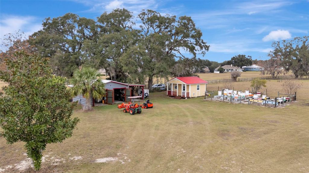 A picturesque oak-lined driveway forms a graceful natural arch as it welcomes you onto this expansive property on Wolf Branch Road in Sorrento, FL. These two vacant parcels totaling just over 11 acres, provide a peaceful setting for a custom residential build surrounded by established natural features. The rear parcel includes a fully climate-controlled, insulated Morton farm building with a concrete floor, interior cypress paneling, a spacious loft, and plenty of storage. The lower level is equipped with a full kitchen and bathroom, offering flexible use options while planning and constructing a future home. Additional improvements include multiple outbuildings, such as a small flex structure known as the Honey Hut and a large equipment barn suitable for storage or workshop use. The property is equipped with a whole-house generator, an existing septic system, and a well. With ample acreage and existing infrastructure in place, these parcels provide versatility for buyers looking to build according to their own plans and specifications. The second parcel is 6.04 acres and is included.