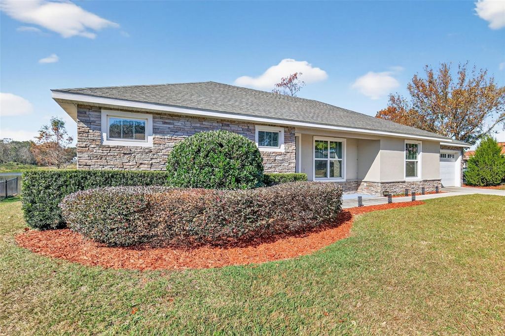 Experience the perfect blend of modern luxury and small-town charm in this stunning pond-front custom home, built in 2021. Situated on the serene banks of Sawgrass Pond, this three-bedroom, two-bathroom residence offers over 1,500 square feet of thoughtfully designed living space with breathtaking water views from multiple rooms. The exterior immediately impresses with elegant stone accents, while the interior features a seamless open-concept split floor plan with durable ceramic tile throughout. The gourmet kitchen is a chef's dream, boasting solid wood cabinetry, premium quartz countertops, a center island, and stainless steel appliances. Both bathrooms showcase sophisticated custom tile work and granite countertops, and the primary suite provides a private retreat with a custom California Closet. Large windows flood the home with natural light, highlighting the contemporary finishes that lead out to a covered back porch overlooking the water. Location is everything in the heart of Montverde; you are less than a quarter-mile from Kirk Park, the hub for the famous Montverde Day festival, and only a half-mile from the prestigious Montverde Academy. Commuting is a breeze, as the property is located less than eight miles from multiple ramps for the Florida Turnpike, providing quick and easy access to Orlando and beyond. Whether you are enjoying the quiet views of the pond or walking to local community events, this home offers an unparalleled lifestyle in a highly sought-after location. Come see why this meticulously maintained property is the perfect place to call home.
