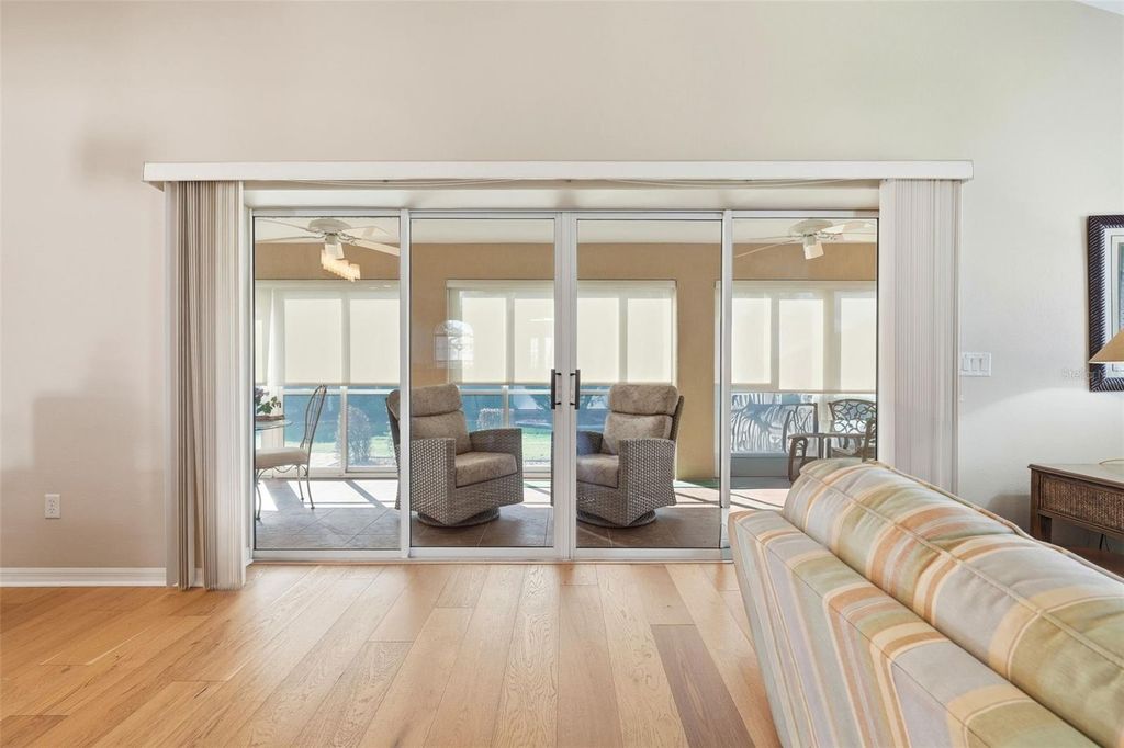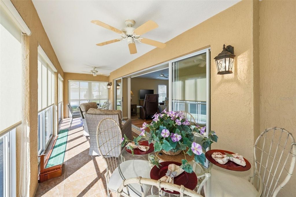 Fully furnished / Turnkey -- INCLUDING GAS GOLF CART!! Beautiful Gardenia plan in the HIGHLY SOUGHT AFTER VILLAGE OF LARGO. You will love being moments away from the live entertainment, GREAT dining, shopping at Lake Sumter Landing! This beautiful concrete block / stucco home is on a peaceful corner home site with upgraded park like landscaping. The Enclosed Lanai will become your favorite room in the house, as it has beautiful light pouring in but is also quite private/peaceful. Southern Exposure backyard is IDEAL (no dreaded Western sun to deal with). This home has been CONTINOUSLY maintained with very high standards. This was a 2nd home for the sellers, so it has been lightly lived in. Some of the wonderful upgrades are: LENNOX HVAC WITH UV LIGHT, 2025 - FULL HOUSE SURGE PROTECTOR - BRAND NEW SMOKE DETECTORS THROUGHOUT - COLOR COATED GARAGE FLOOR - FRESH PAINT ON THE EXTERIOR - NATURAL GAS - GAS DRYER - GAS COOKING - GAS WATER HEATER - CUSTOM PAVER DRIVEWAY/WALKWAY AND REAR PATIO (freshly sealed for years of easy enjoyment) - ENGINEERED HARDWOOD FLOORS LIVING ROOM/KITCHEN/DINING ROOM - Tile in the baths - Upgraded carpet in the bedrooms - ROOF REPLACED 2023 - FULL GUTTERS ON ENTIRE HOME - GAS GOLF CART FROM THE VILLAGES GOLF CARS - MAINTAINED / SERVICED REGULARLY - water heater replaced in 2016 - 3RD bedroom has no closet but easily holds a king sized bed and furniture. All items in the home mentioned on the inventory sheet convey. This is truly a SPECIAL, WELL LOVED HOME that is truly a 'move right in and start living the lifestyle' home. Be sure to spend some time in the park like yard - even the shrubs are trimmed to perfection. WELCOME HOME to this lovely Gardenia in The Village of Largo.