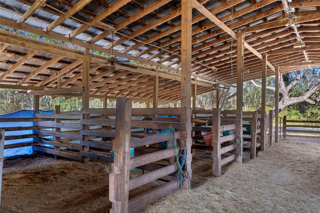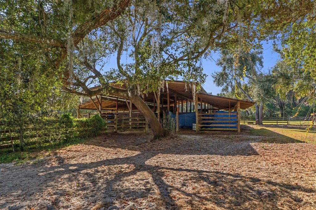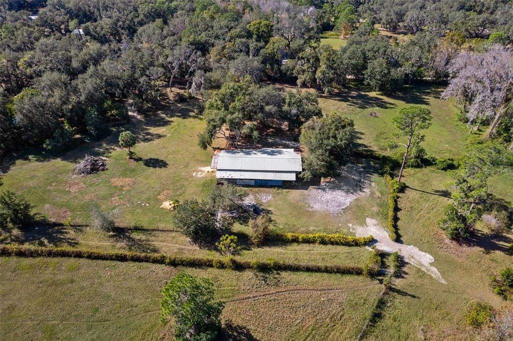 14-acre Horse farm estate offering privacy, versatility, and income potential with thoughtfully designed equestrian amenities. The custom-built main residence sits on a scenic 14-acre parcel and offers 3,564 sq ft with 4 bedrooms and 2.5 baths. Both stories are concrete block and complete with double pane glass windows and doors. Inside, the home is anchored by a striking two-story stacked NC Cherry Long stone fireplace, creating a dramatic focal point in the main living area. It is flanked by a wall of windows for an abundance of natural light. A floating oak staircase adds warmth and craftsmanship, while the new kitchen installed in 2022 flows seamlessly into generous living spaces designed for everyday comfort and entertaining. Outdoor highlights include a custom resort-style pool with slide, firepit, pool equipment house, two tranquil koi ponds with a waterfall and expansive grounds framed by mature trees and open pasture views. The 2 story, 864 sq ft detached garage features a finished, screened-in Florida room above, ideal for gatherings, hobbies, or enjoying the outdoors year-round bug-free. You'll enjoy walking across the bridge from the primary bedroom to the Florida room. Designed with equestrian use in mind, the property offers a comprehensive layout including lighting throughout the property and multiple pastures. An extra-wide pole barn with metal roof and center aisle allows for configurable stall layouts ranging from 7 to 13 stalls (currently 10x20), complete with a wash rack. Ask about the farm equipment included. The land is multiple pastures, two small turnout paddocks, and is cross-fenced with no-climb fencing for safety and ease of management. A pond with viewing gazebo adds both function and a peaceful gathering space. This property offers the ideal balance of country living with modern convenience, located just minutes from shopping, dining, and services in The Villages. Publix and Aldi's are just down the road. For active equestrians, it is also well positioned near established venues including Sumter Equestrian (24mi), Grand Oaks (14mi), Rocking Horse (29mi), Three Lakes (13), Florida Horse Park (31mi) and the World Equestrian Center WEC Ocala (44mi). The Florida Turnpike is approximately two miles away, providing efficient access throughout Central Florida. With expansive acreage, multiple residences, immediate income, and well-appointed equestrian infrastructure, this property presents a rare combination of lifestyle, flexibility, and accessibility in a highly desirable setting. This exceptional property features availability of additional adjacent residences for a total of three properties across multiple parcels, making it ideal for multigenerational living, rental income, or a private rural compound. These properties are: 27750 Debbie Rd with ~6 acres, 3-bed/2-bath mobile home, 1,152 sq ft (1993). 27720 Debbie Rd with ~5 acres, 3-bed/2-bath mobile home, 1,560 sq ft (2010). Both homes are currently tenant-occupied offering immediate income opportunities. Also a 72' x 144' riding arena shaded by mature oak trees, a 60' round pen which would complete the huge family estate.