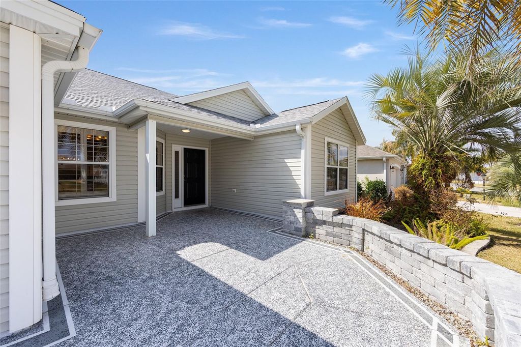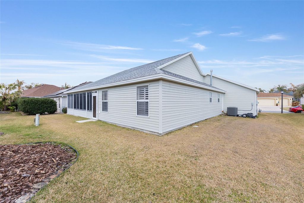 BOND is PAID!!! -- Roof 2022 -- Village of SABEL CHASE - CAMELLIA Designer Model with GOLF CART Garage & ENCLOSED Florida Room! * Built 2006, this 3 Bedroom 2 Bath Home offers 2,179 Enclosed Sq Ft (1,927 Base + Florida Room with 252 sq ft/not under main unit air) ** With 2-Car Garage AND Golf Cart Garage, High & Vaulted Ceilings, PLANTATION Shutters Throughout, GAS HOME, Custom Painted Driveway, Walkway & Front Porch. - ROOF: 2022, HVAC: 2016. - Tile in Kitchen, Baths, Laundry Room & Foyer, NEW CARPET & FRESHLY PAINTED INSIDE! - The Kitchen Boasts QUARTZ Countertops with TILED BACKSPLASH, Breakfast Bar Overhang, STAINLESS STEEL UPDATED APPLIANCES, Raised Panel Cabinets with Pull-out Shelving, Corner Cabinets, Cabinet Pantry and EXTRA CUSTOM BUILT-IN PANTRY. The Dining Room and Living Room are Spacious and Open. There are Glass Sliders off the Living Room leading to the Florida Room (Not Under Heat & Air) featuring Acrylic Slider Windows with Screens, Accordion Blinds, and Glass Sliders to the Owner's Bedroom. The Owner's Suite has a Foyer Entry, a 19 Ft x 14 Ft Bedroom with 10 Ft and Vaulted Ceiling, TWO WALK-IN Closets with Pocket Door Entry & Extra Wire Shelving. The Owner's Bath includes a Linen Closet, QUARTZ TOPPED L-Shaped Vanity with 2 Sinks and Makeup Area, Private Privy with Pocket Door Entry, and a Step-in Shower with Solid Surface Walls and Bench Seat. The Guest Wing offers Bedroom 2 (Den/Office) in Front (No Closet), Bedroom 3 with Closet and Side Yard Window, and a Guest Bath with Tub/Shower Combo with Tile Walls, Grab Bars, Single Vanity & Medicine Cabinet. - The INSIDE Laundry Room features a Louvered Entry Door, Wall Mounted Cabinets, GE Washer and GE GAS Dryer. The 2 Car PLUS Golf Cart Garage is L-Shaped with Pull-down Attic Stairs, HVAC Cabinet with Louvered Doors, and Irrigation System. Buyer to Verify all Measurements and Information. BOND IS PAID! Unit 118 Maintenance (CDD): $464.21/yr, - The Villages Fire District: $320.71/yr. - Other Fees: $204/per month (Amenity Fee) -- Don't miss the Attached Video Tour of this Home in a GREAT LOCATION!
