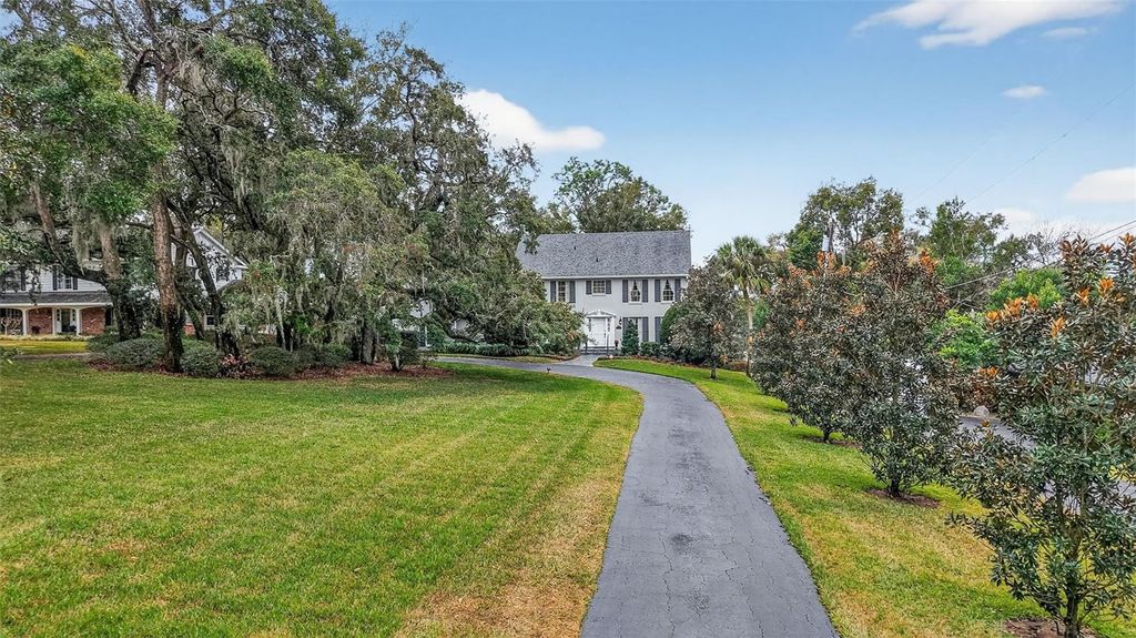 Elegant Custom-Built Estate with East Crooked Lake Views - Set on a serene .89-acre homesite along picturesque Country Club Drive, this one-owner, custom-built estate offers timeless Southern elegance, privacy, and sweeping natural beauty with views of East Crooked Lake. Surrounded by stately, established homes on expansive lawns shaded by towering pines, magnolias, and moss-draped oaks, this hidden gem feels worlds away"”yet perfectly placed. A long paved drive winds through mature trees to reveal a classic Southern Colonial, where refined curb appeal immediately impresses. A grand circular driveway, detailed shutters, slate walkway, symmetrical landscaping, and classic colonial pediments and pilasters create a striking first impression that sets the tone for what lies within. Inside, the home balances formal elegance with warm livability. Rich wood floors, beams, crown molding, fireplaces, and thoughtfully designed living spaces span three levels, each offering tranquil views of the lush backyard with the lake gently peeking through. The welcoming foyer evokes a bygone era with slate flooring, wainscoting, sophisticated wall coverings, and an elegant staircase adorned with a custom ornate runner. Flanking the foyer are the formal living and dining rooms"”both featuring pocket doors, wood floors, crown molding, and floor-to-ceiling windows. The living room showcases a stone-surround fireplace with a fluted mantel. In contrast, the dining room offers classic wainscoting and convenient access to the kitchen"”perfect for hosting memorable holiday gatherings. The inviting family room features beamed ceilings, wood walls and floors, built-ins, and a brick fireplace. Panoramic backyard views and access to the expansive rear balcony make this an ideal space for rocking chairs, iced tea, and quiet moments surrounded by nature. The well-appointed kitchen is both beautiful and functional, offering richly stained custom cabinetry, granite countertops, generous storage, a spacious dining alcove, and a large walk-in pantry. Adjacent is the laundry room with a sink and storage, and access to the freshly painted rear-entry attached two-car garage. Also on the main level is a private home office with built-ins and a full bath featuring an antique vanity and tub/shower. Upstairs, the primary suite is a peaceful retreat with wood floors, oversized windows, a private balcony overlooking the backyard, and an en-suite bath with dual granite vanities, custom closet storage, and a tiled shower. Bedrooms two and three feature built-in desks, with bedroom three offering direct access to the hall bath. The fully finished basement adds exceptional versatility and charm, designed with a cozy Old English pub ambiance. Ideal for entertaining or extended guests, this space includes a pool table area, a rock fireplace, a bar, a full bedroom, and a full bath. Step outside to the stone sun patio and wander through the garden-like backyard, where the elevated setting allows you to see beyond neighboring rooftops and enjoy peaceful lake views. From its gracious approach to its beautifully layered interior and tranquil outdoor spaces, this estate is a rare offering"”perfect for family living, entertaining, and creating lasting memories. Welcome Home!
