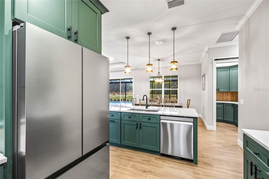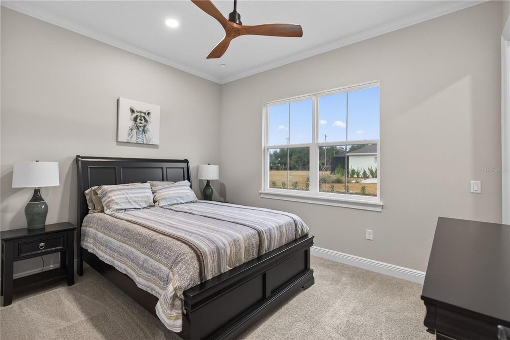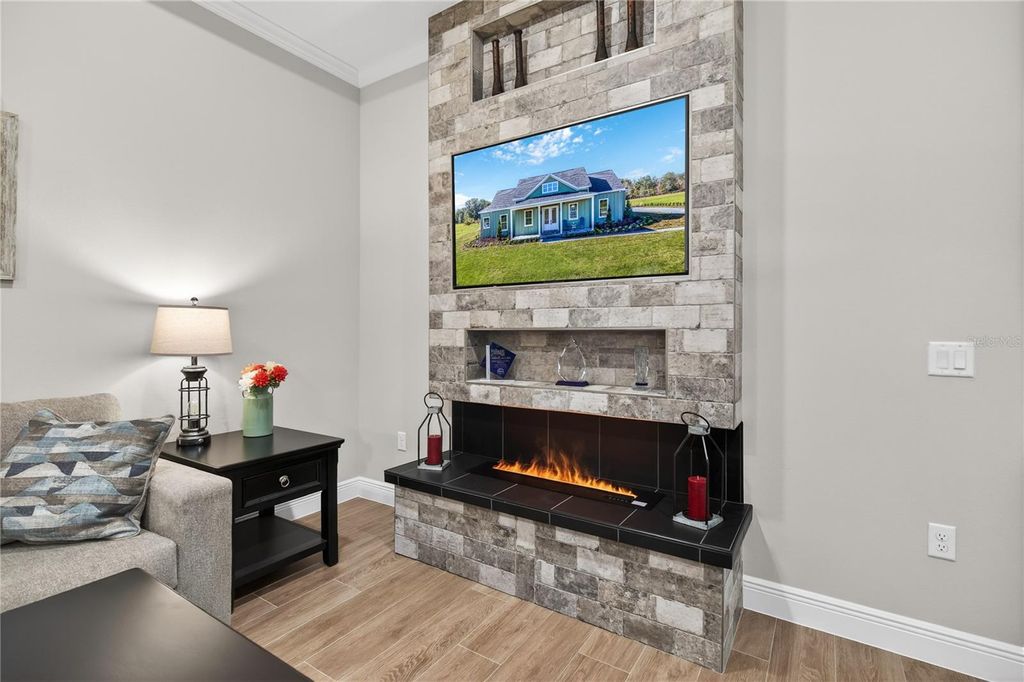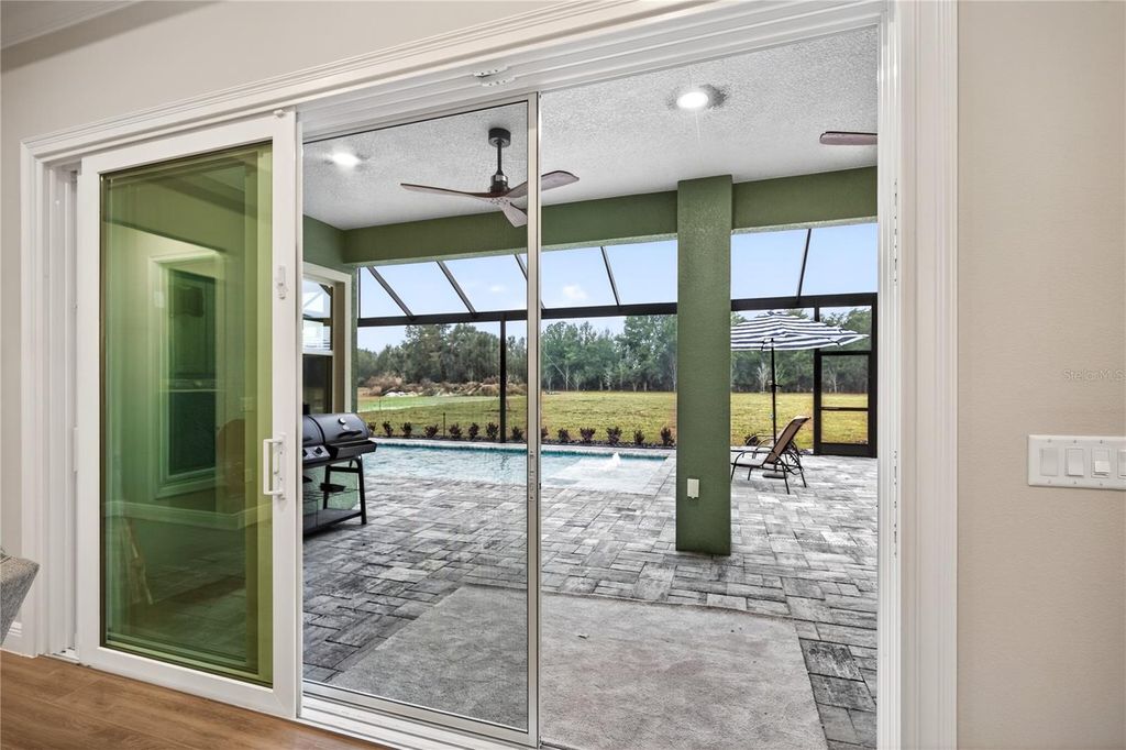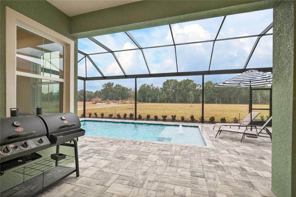 Welcome to Shoreline Ranch Community. This beautiful 4 bedroom, 2 bathroom home with stunning landscaping on a 1 acre lot is located in Lake County Fl. Featuring floating cabinets with LED lights in both bathrooms, heated pool with screen enclosure, a lot of storage space, undermount sinks, EV charger installed in garage, stunning vapor fireplace and TV, community boat ramp and dock, professionally landscaped lawn, kitchen backsplash, pavers on front and rear porch, pantry with cabinets. Contact us today for a showing. ** This is a Builder Model. Please note that occupancy will not be available until December 2026.