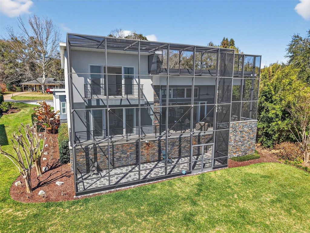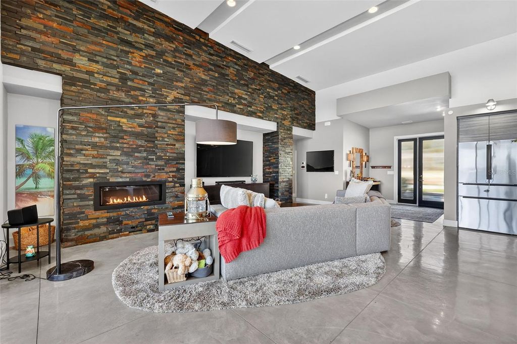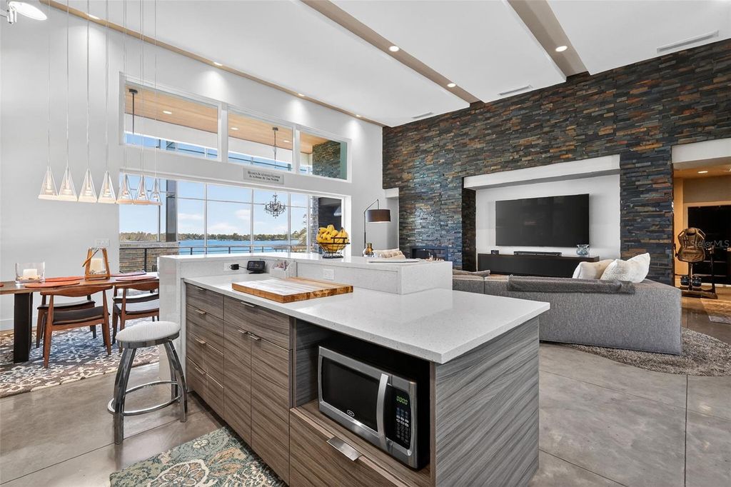 Indulge in the rare privilege of true lakefront luxury on the coveted shores of Lake Gertrude"”where refined architecture, cutting-edge efficiency, and breathtaking panoramas converge in one extraordinary custom estate. Designed for the discerning buyer, this contemporary masterpiece showcases an innovative open-concept design framed by disappearing walls of glass that effortlessly blend indoor and outdoor living. The expansive screened terrace"”complete with a summer kitchen, tongue-and-groove ceiling, and statement chandelier"”becomes a private waterfront lounge suspended above shimmering waters. Host unforgettable evenings beneath painted sunsets and starlit skies as boats glide quietly across the lake. Inside, polished concrete floors, soaring ceilings, and a dramatic stacked-stone feature wall create a striking yet sophisticated ambiance. A sleek gas fireplace anchors the grand living space, while the chef's kitchen rivals those found in luxury design magazines"”Quartz surfaces, custom European-style cabinetry, premium stainless appliances, an oversized waterfall island, and a JennAir gas range deliver both beauty and performance. The main-level owner's retreat is a sanctuary of tranquility and refinement. Wake each morning to uninterrupted lake views from your private sitting area. The spa-caliber bath exudes understated opulence with Quartz vanities, dual sinks, porcelain tile, and a frameless glass shower designed for indulgent relaxation. Upstairs, two private guest suites"”each with its own en-suite bath and walk-in closet"”offer elevated comfort. One features a secluded balcony overlooking the water, an intimate vantage point for sunrise reflections across the lake. This residence also embraces modern sustainability with solar power, ensuring exceptional efficiency without compromising luxury. Beyond the interiors, manicured grounds roll gently to a reinforced aluminum seawall and private dock"”your gateway to boating and water skiing on the pristine waters of Lake Gertrude. Moments from the boutiques, fine dining, and cultural charm of downtown Mount Dora, yet worlds away in privacy and prestige, this is more than a home"”it is a statement. For those who expect nothing less than exceptional, welcome to your private lakeside legacy.