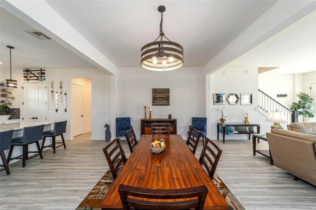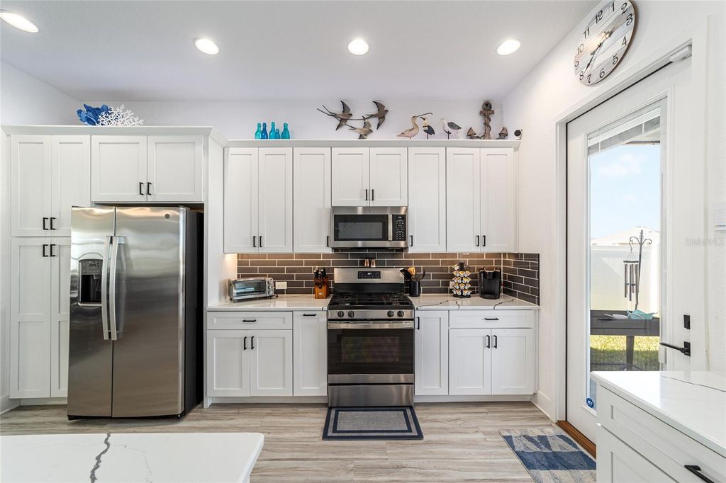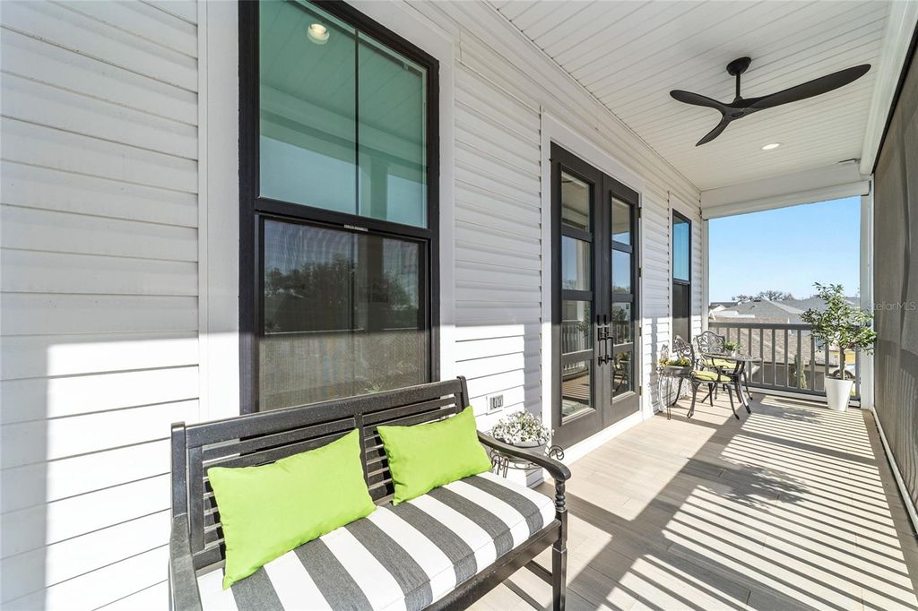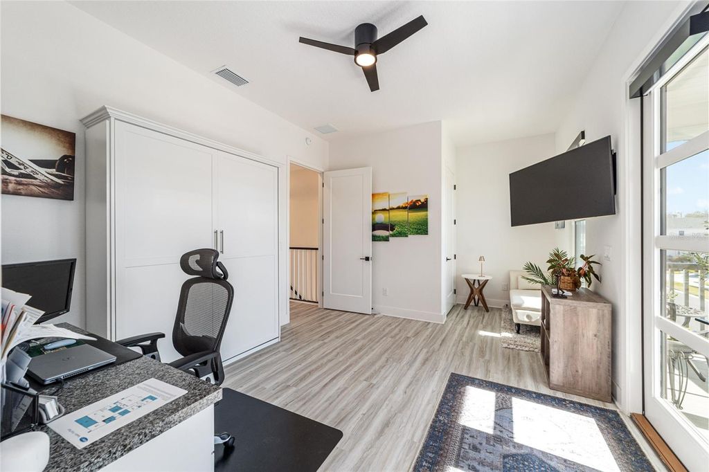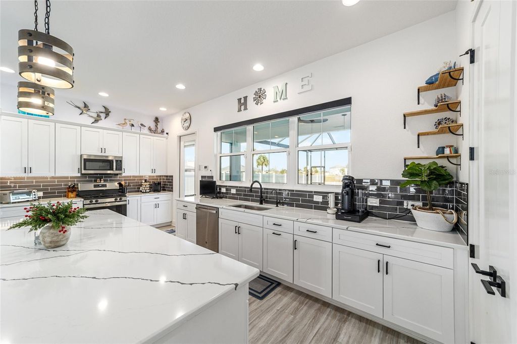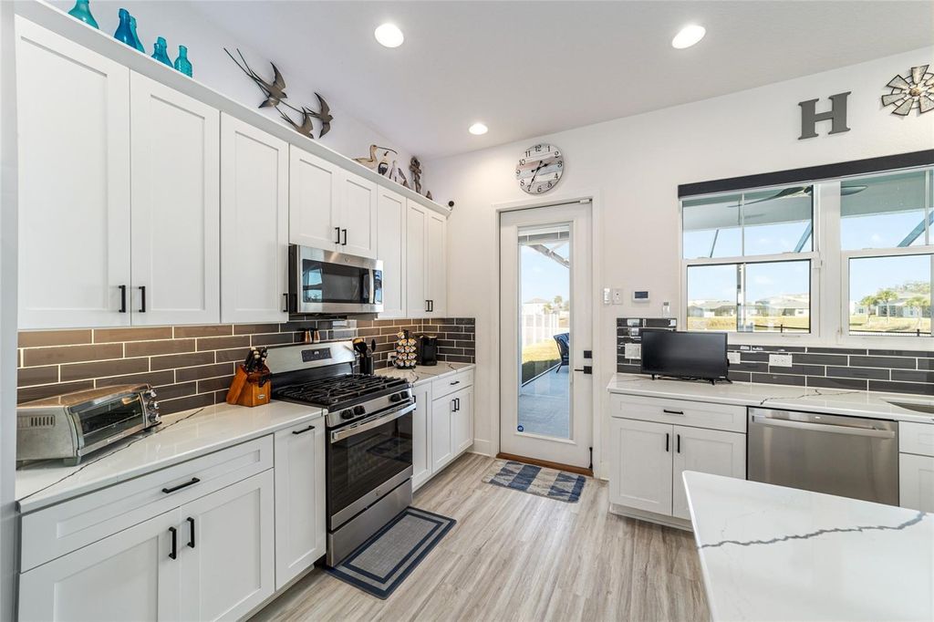 ~$11,500 PRICE REDUCTION~ ~WATER VIEW~ ~HEATED SALTWATER POOL~ ~GOLF CART GARAGE~ ~10' CEILINGS~ ~GOLF CART/CAR OPTION~ ~2023 ROOF/HVAC/HOT WATER HEATER~ Welcome to this stunning DOUBLE PLAY model in the Village of MIDDLETON in The Villages--Exceptional 2-story POOL home offering WATER VIEWS, upscale finishes, impressive upgrades throughout. Situated on beautifully landscaped grounds with BRICK PAVER DRIVEWAY and WALKWAYS, this home delivers outstanding curb appeal and resort-style living. 10' ceilings throughout the home enhance an open airy feel while LUXURY PLANK FLOORING spans the entire living space except for upstairs baths. The living room showcases UPGRADED LIGHTING, ceiling fan, custom 3-way ELECTRIC FIRELPLACE with striking TV entertainment wall featuring decorative backsplash and recessed lighting. The dining room also features upgraded lighting, creating an elegant space for gatherings. The gourmet kitchen is beautifully appointed with UPGRADED CABINETRY, QUARTZ countertops, STAINLESS-STEEL appliances, TILE BACKSPLASH, and a large CENTER ISLAND"”perfect for cooking and entertaining. Conveniently located on the main floor, the primary suite offers high ceilings, ceiling fan, FITTED WINDOW SHADES, CUSTOM CLOSET SHELVING in a walk-in closet. The luxurious ensuite bath features LVP, a TILED WALK-IN SHOWER, private commode area, UPGRADED CABINETRY, and QUARTZ countertops. Upstairs are 4 bedrooms, each pair connected by a JACK & JILL BATH providing flexibility for family and visitors. Every bedroom includes high ceilings, a ceiling fan, LVP flooring and built-in closet. Baths sport ceramic tile floors, QUARTZ countertops, UPGRADED CABINETRY. One bath offers a tile tub/shower combo while the other has a tiled walk-in shower. The front bedroom, currently used as an office, opens to a screened balcony and houses a MURPHY BED. Additional interior highlights include a main-floor HALF BATH with upgraded finishes, an INSIDE LAUNDRY ROOM with CLEANSTART Rainsoft no-detergent laundry system plus luxury utility sink, custom frosted glass FRENCH DOORS, motion-sensor stairway lighting with carpet runner, ELECTRIC WINDOW SHADE controls, RETRACTABLE BALCONY SCREEN, air purification systems, Air Masters in both AC units, and an Eaton whole-house SURGE PROTECTOR. Outdoor living is equally impressive with a SCREENED BIRDCAGE / LANAI featuring an LED-equipped AWNING over a portion of the space and a sparkling 15-x 30 HEATED SALTWATER POOL with safety gate. The yard is enhanced by custom landscaping, whole-house GUTTERS, irrigation flow filter, RainSoft water softening system, reverse osmosis water system, and mango and lime fruit trees. Spacious 2-car garage plus GOLF CART GARAGE features an insulated door, attic stairs, and 2 SOLAR ATTIC FANS for added efficiency. From second floor find another access to attic space. Unique programmable JELLYFISH lighting surrounds house. Paid off ADT security system with cameras included. This extraordinary home combines space, luxury, and thoughtful upgrades in one of The Villages newest FAMILY communities. At full price, buyer will also receive 2025 Denago Rover XL electric 4-forward seat golf cart with 600 miles. Don't miss the opportunity to experience exceptional Florida living at its finest! You're near THE VILLAGES CHARTER SCHOOLS, Shallow Creek and Woodlands Championship Golf Courses, Eastport live entertainment, shopping, restaurants, very convenient!