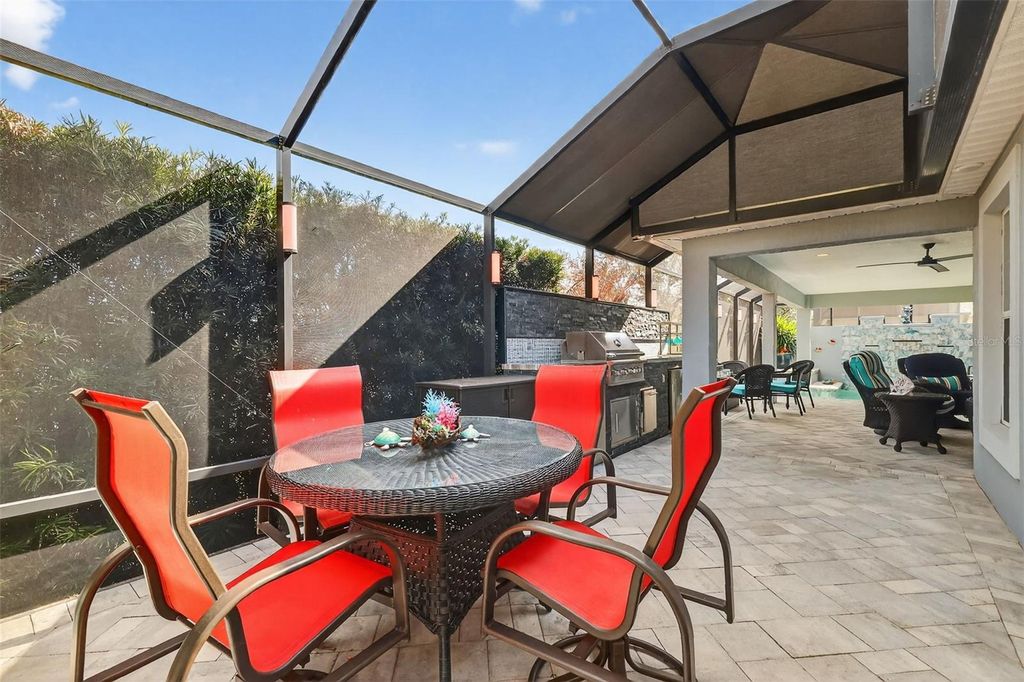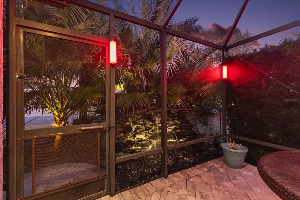 Under contract-accepting backup offers. One or more photo(s) has been virtually staged. ENJOY BREATHTAKING, PANORAMIC, WATERFRONT VIEWS and SWEEPING VISTAS of Evans Prairie in this EXQUISITE 3/2 stretched Iris featuring a 466sf LANAI with resort-style POOL and SHOWROOM QUALITY, 672sf TWO-CAR+GOLF CART GARAGE on a LARGE CORNER LOT in the highly desirable Village of Hillsborough! JUST MINUTES to Brownwood Paddock Square with shopping, dining, and live nightly entertainment! The exterior is beautifully enhanced with STONE accents, lush tropical TIERED landscaping, PAVER hacienda wall, SCREENED entry vestibule, DECORATIVELY PAINTED drive and walkways, and LEADED GLASS door with sidelights and arched transom. The OPEN CONCEPT living, dining, and kitchen feature diagonally TILED flooring and soaring HIGH VAULTED ceilings adorned with CROWN MOLDING. Additional UPGRADES include PLANTATION SHUTTERS, BRAND NEW APPLIANCES, and MODERN lighting throughout. The gourmet kitchen showcases TAUPE cabinetry with GLASS accents, GRANITE countertops, TILE backsplash, under-and over-cabinet lighting, DOUBLE PANTRY with ROLLOUTS, STAINLESS appliances, WINE COOLER, EAT-IN counter, and an adjacent dinette for casual dining. The living room boasts POCKET SLIDERS topped by an elegant cornice, creating a seamless indoor-outdoor flow to the SPECTACULAR 466sf PAVER lanai and EXTENDED birdcage. This PRIVATE, RESORT-INSPIRED RETREAT showcases a STUNNING POOL with both HEATING and COOLING app-based capabilities and a PRIVACY wall with 3 CASCADING WATERFALLS. Entertaining is effortless with the CUSTOM OUTDOOR KITCHEN and BAR complete with a grill and two refrigerators. At the opposite end of the lanai, a CORNER WATERFALL framed by PRIVACY hedging adds a tranquil, spa-like atmosphere. If you've been dreaming of resort-style living at home, this is it! Enjoy a refreshing swim, soak up the sun, host memorable gatherings, or simply unwind while taking in the INCREDIBLE WATER VIEWS! The primary suite features a TRAY ceiling and a CUSTOM WALK-IN closet. Its ensuite bath offers CHERRY cabinetry, GRANITE tops, DUAL sinks, built-in LINEN, TILE ROMAN-STYLE WALK-IN shower, and separate water closet. Two additional bedrooms and bath are PRIVATELY located behind a POCKET door near the front of the home. Bedroom two offers double windows and a built-in closet. Bedroom three boasts CUSTOM CHERRY cabinetry, MURPHY BED, built-in desk, and closet"”ideal for guests or flexible living space. An interior laundry room is outfitted with CUSTOM ORE GRAY CABINETRY for added storage and style. The 672sf garage and golf-cart garage are outlined by CUSTOM ORE GRAY CABINETRY creating a clean, finished, and highly functional space that feels more like an extension of the home than a typical garage. Cabinetry lines the perimeter walls, providing ABUNDANT ENCLOSED STORAGE while framing the space with a modern, cohesive, built-in look. There's also a built-in utility sink, additional refrigerator, and 240sf of ATTIC STORAGE. DON'T MISS YOUR OPPORTUNITY to make this INCREDIBLE HOME YOUR OWN! The Village of Hillsborough is IDEALLY LOCATED - MINUTES to Brownwood Paddock Square! Close to Hillsborough Neighborhood, Bradenton and Manatee Village, and Eisenhower Regional Recreation Centers; Palmetto, Sweetgum and Mangrove Executive Golf Courses; Evans Prairie Country Club; CR 466A with Colony Shopping Plaza and a plethora of shopping, dining, and more! PLEASE WATCH OUR WALKTHROUGH VIDEO of this EXCEPTIONAL POOL HOME in an AMAZING LOCATION, and CALL TODAY for your private showing or virtual tour!