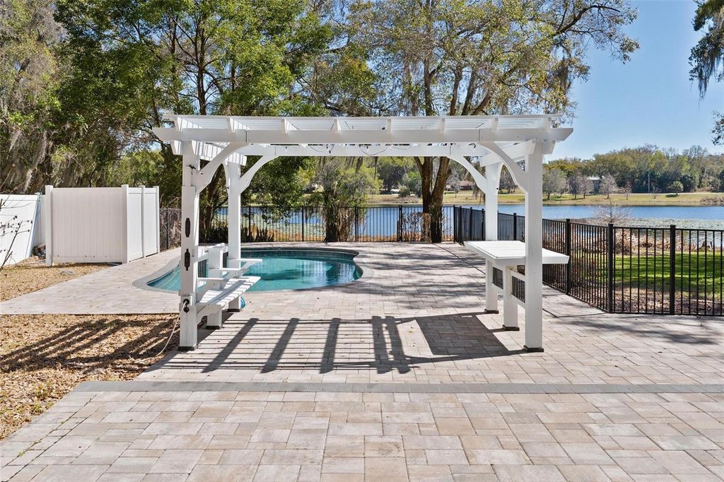 Under contract-accepting backup offers. STUNNING LAKEFRONT POOL HOME WITH CHARACTER, PERSONALITY & BREATHTAKING VIEWS! Welcome to your one-of-a-kind lakefront retreat on beautiful Mirror Lake in Fruitland Park. You will love where you live being close proximity to the brand new elementary school and an easy commute to The Villages and all of the shopping and entertainment they offer. Boasting nearly 2,500 square feet of living space, this home is filled with warmth, personality, and thoughtful updates that make it truly stand apart. From the moment you step inside, you're greeted by vaulted ceilings, updated lighting and ceiling fans, and beautiful laminate flooring that flows through the living areas. The kitchen has been tastefully upgraded with granite countertops, stainless steel appliances, and modern cabinet hardware "” creating a space that is both functional and stylish for everyday living or entertaining. This thoughtfully designed floor plan offers two spacious master suites, each featuring its own private ensuite bathroom and walk-in closet "” perfect for multi-generational living or extended guests. In addition, a separate guest wing includes two bedrooms that share a full bath, offering privacy and flexibility for family or visitors. Major updates provide peace of mind with a new roof (2021) and one of the 2 AC unites upgraded in 2025. Step outside and prepare to be captivated. The expansive wrap-around lanai is the perfect place to sip your morning coffee or unwind in the evening while enjoying the stunning, panoramic lake views. Beyond the lanai, a sprawling 1,250 sq ft paver pool deck surrounds the sparkling pool "” an entertainer's dream and a private lakeside oasis all in one. Homes with this much character, personality, space, and breathtaking water views rarely become available. Don't miss your opportunity to own a true slice of lakefront paradise.