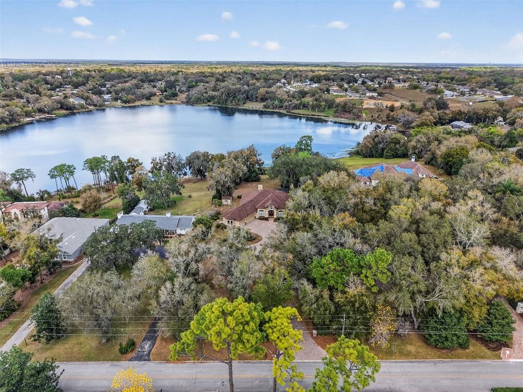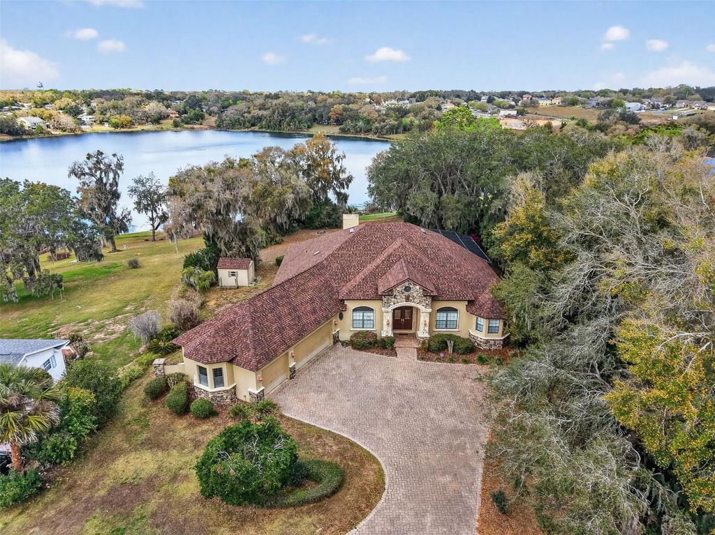 LUXURY ON LAKE NETTIE PRICE IMPROVEMENT!! Experience the beauty of lake front living on Lake Nettie, ideally situated between charming Mount Dora and Eustis. Privately tucked far from the road, this exceptional residence welcomes you with a long paver driveway, generous parking, and an oversized three-car garage featuring an air-conditioned workshop perfect for hobbies, storage, or projects. From the moment you enter, the home captures breathtaking views of the water and surrounding landscape. Soaring vaulted ceilings and an open, light-filled floor plan create an elegant, yet comfortable atmosphere designed for both entertaining and everyday living. Multiple gathering spaces including formal living and dining areas, a spacious family room, and a casual dining area adjoining the kitchen offer effortless flow for hosting family and friends. The primary suite is a serene retreat, showcasing sweeping views of the lake and pool, abundant natural light, and a beautifully appointed bath featuring a walk-in shower and deep soaking tub for ultimate relaxation. A desirable split-bedroom design ensures privacy, with generously sized secondary bedrooms and ample closet space. Step outside to your own private waterfront oasis. The screened lanai frames a spectacular saltwater pool with cascading waterfall, creating the perfect setting for relaxing afternoons or evening gatherings. Stroll down to the beautiful shoreline to view all the beauty that Florida offers and then gather around the stone fire pit under the stars as the sun sets over the lake. This remarkable property offers the rare combination of peaceful, resort-style lakefront living with convenient access to shopping, dining, medical care and major roadways, making commuting effortless while preserving the tranquility of your private retreat.