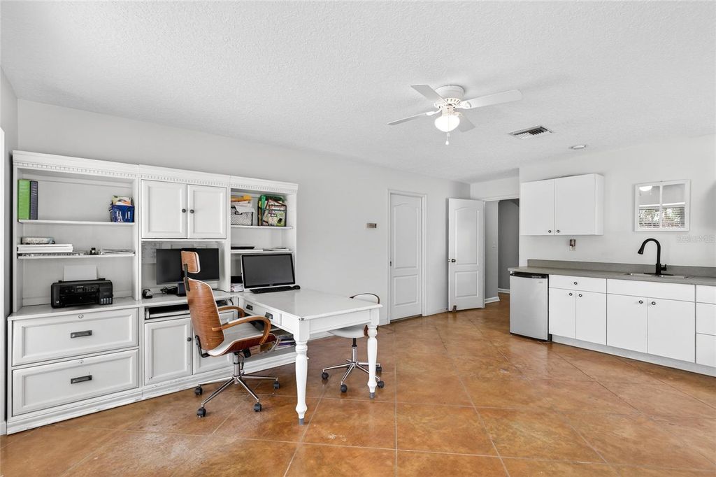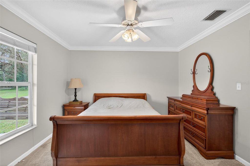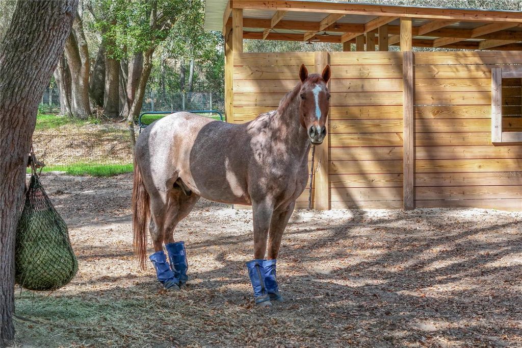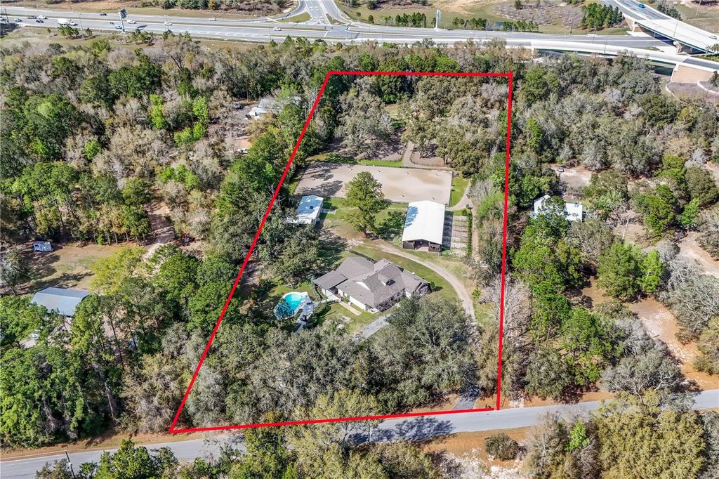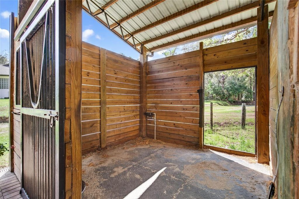 Exceptional design and thoughtful planning define this beautifully appointed equestrian property where well-equipped horse facilities and comfortable living spaces come together to create a truly turnkey horse estate. At the center of the property is a thoughtfully designed main barn built with both functionality and airflow in mind. A striking 16-foot pavered center aisle leads to eight spacious 12' x 12' stalls, each with attached run-ins that provide flexibility and excellent ventilation. The barn is equipped with oversized aisleway fans, automatic waterers, lighting and electrical outlets in every stall, two 12' x 12' wash racks, a feed room, and eight walk-in tack lockers for organized storage. An air-conditioned kitchenette with hot and cold water adds convenience for daily barn operations. The layout also allows the option to add an additional stall or expand hay and feed storage if desired. An additional two-stall barn with wash rack is located within one of the paddocks. The riding facilities are equally impressive. A full-size 100' x 200' laser-leveled competition dressage arena with fiber footing and irrigation provides a consistent surface ideal for schooling and training. A viewing stand with additional deck space overlooks the arena, offering a comfortable place to observe riding activity. Five shady paddocks with irrigation and no-climb fencing provide generous turnout space. A small trail loop winds through the back of the property, and designated areas are in place for manure composting and disposal. Additional improvements include a pole barn with 14-foot ceilings and adjacent parking pad providing excellent space for trailers, tractors, or equipment. The detached 50' x 25' garage/workshop features two roll-up doors and multiple power options including 120V 30-amp, 240V 50-amp, and 125V 30-amp service. Accessed through two electric gates, the residence offers privacy and a welcoming sense of arrival. The main home features four bedrooms, three bathrooms, and a dedicated office, along with a private one-bedroom, one-bath in-law suite with separate entrance, living room, and kitchenette. Stamped concrete floors run throughout the main living areas and are complemented by abundant natural light. The living room features a gas fireplace that creates a warm focal point for gathering. A spacious family room with built-in bench storage offers flexible space ideal for a media room, exercise area, or additional living space. The primary suite includes a walk-in closet and ensuite bath with garden tub. Bedrooms two and three share a Jack-and-Jill bathroom, while bedroom four is located near an additional full hallway bath. Outdoor living spaces include a raised garden area and a covered patio overlooking a tranquil goldfish pond that leads to the swimming pool, creating a peaceful setting for relaxing or entertaining. Located in an area known for its equestrian lifestyle, the property offers convenient access to riding trails in nearby Seminole State Forest and Ocala National Forest. It is also within comfortable driving distance of popular show grounds including Clarcona Horse Park, Grand Oaks, and the Florida Horse Park. Shopping, dining, and everyday conveniences are just minutes away, while Ocala, Orlando, area airports, and Florida's east coast beaches remain easily accessible.